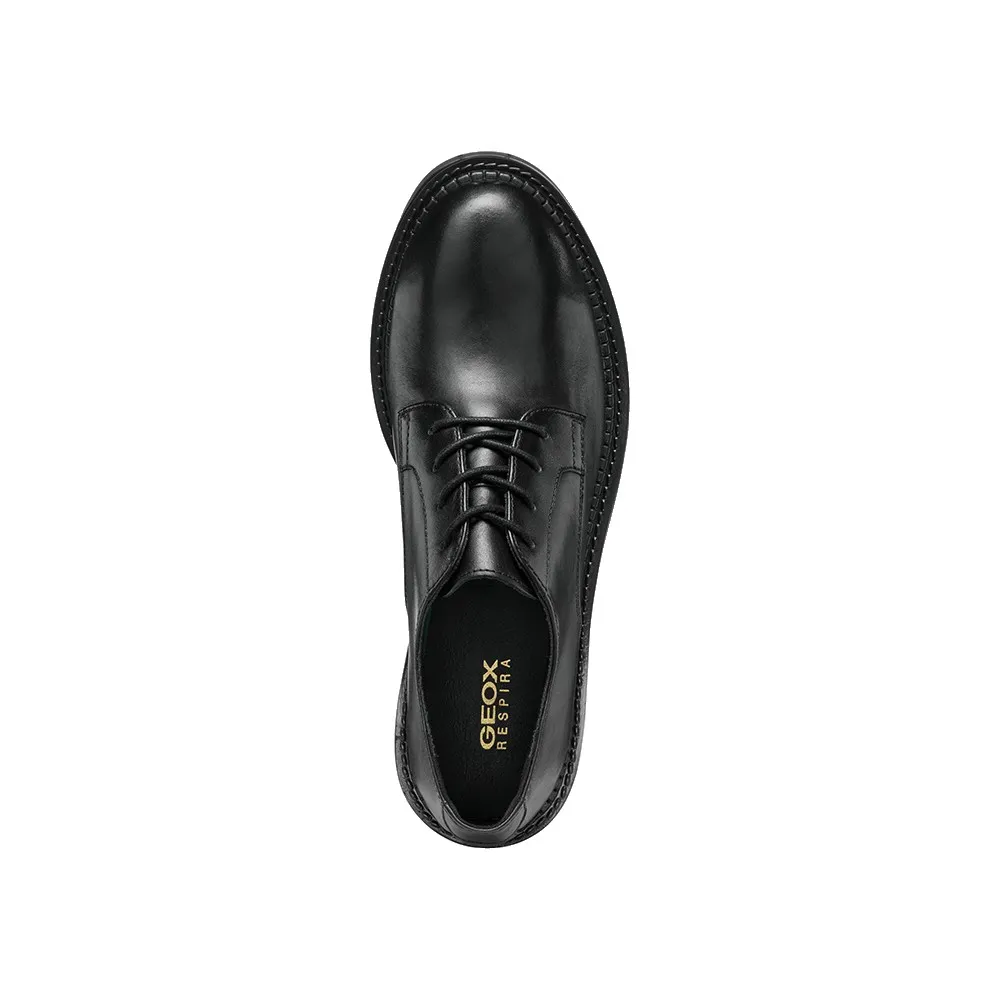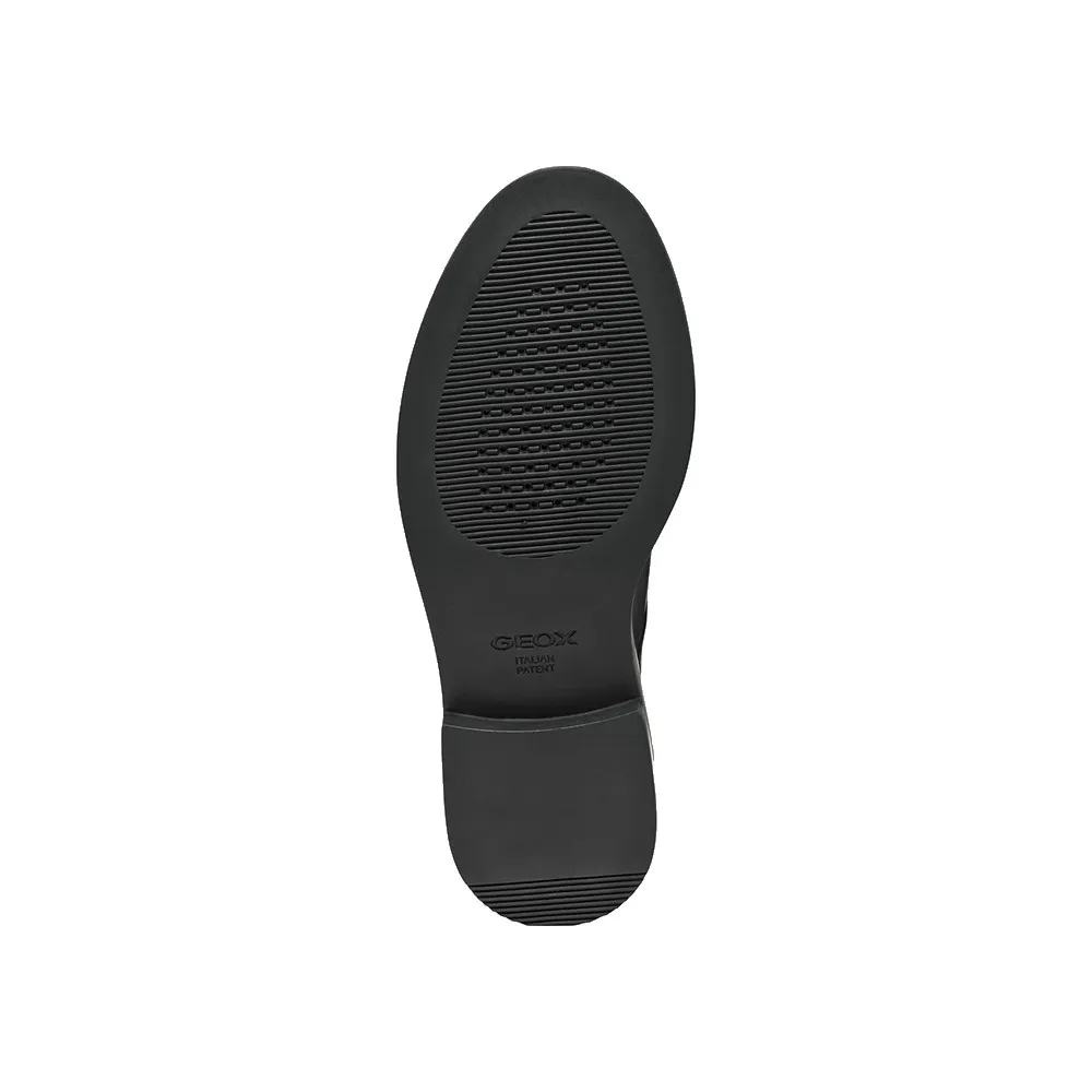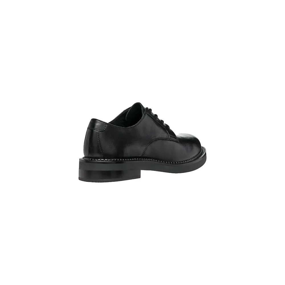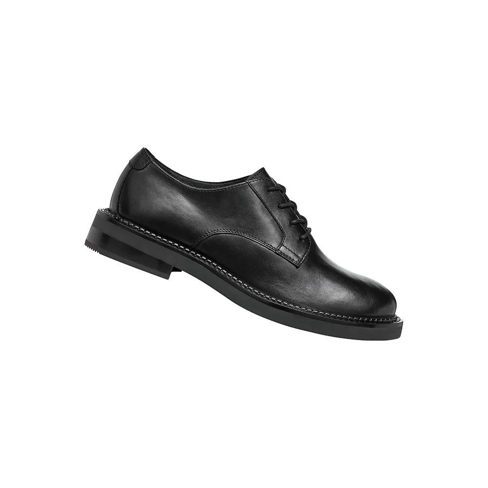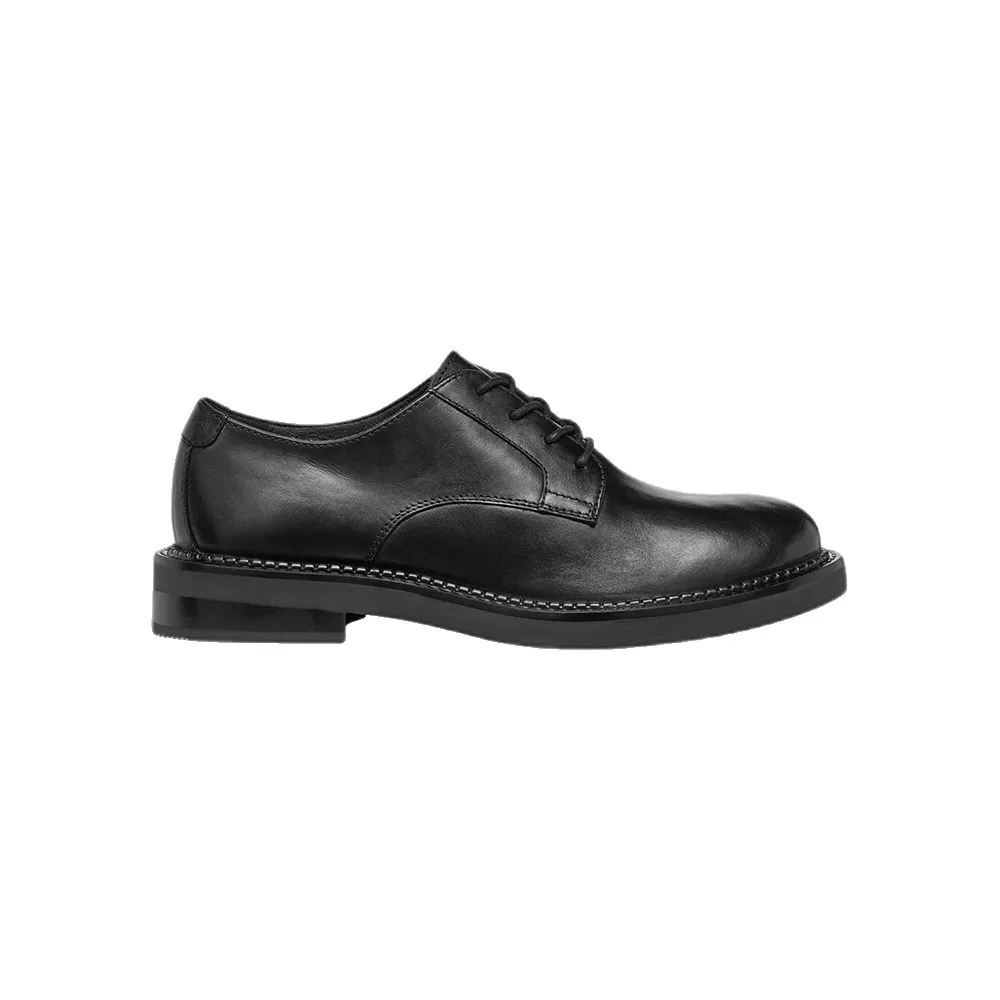 Гладкий и гибкий кожаный верх этой модели выполнен в классическом стиле и представлен здесь в классическом черном цвете.
