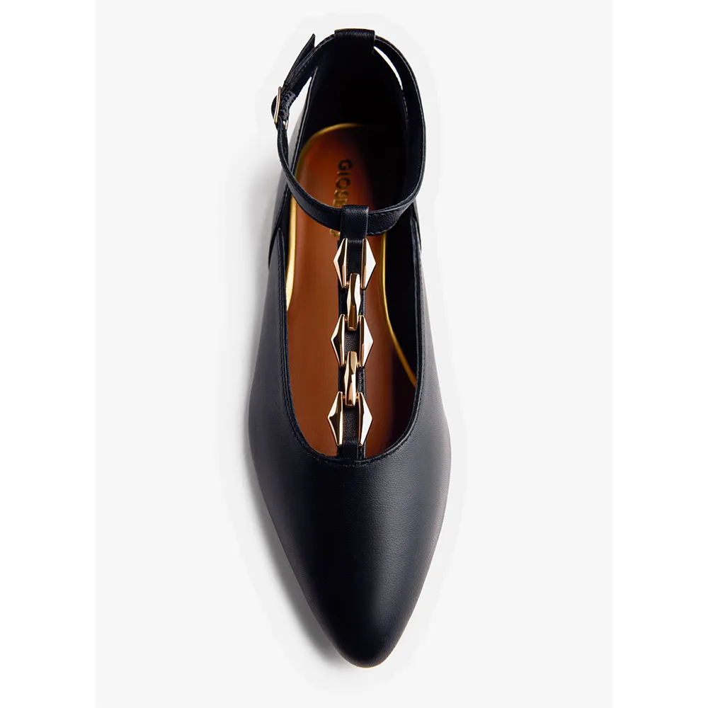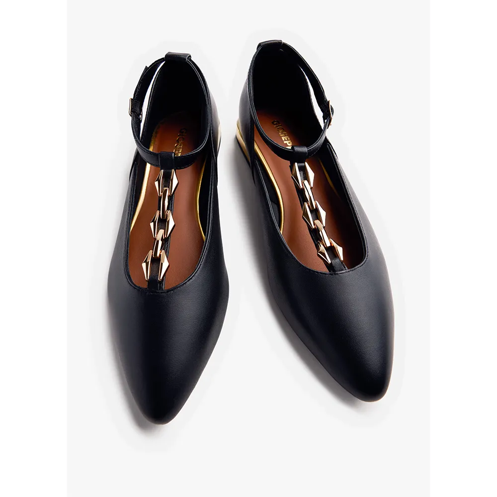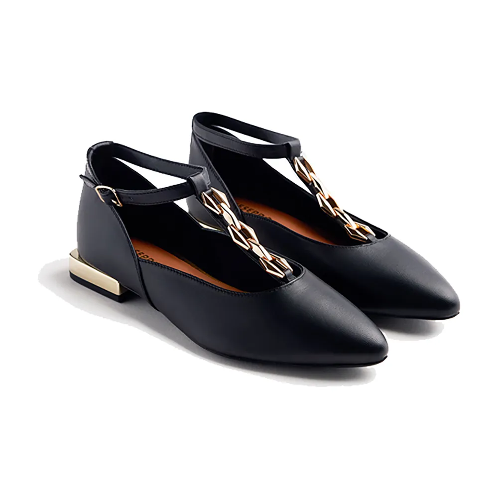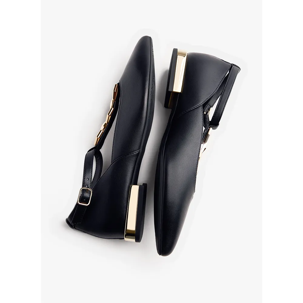 Кожаные балетки с цепочкой золотистого цвета и металлическим каблуком.