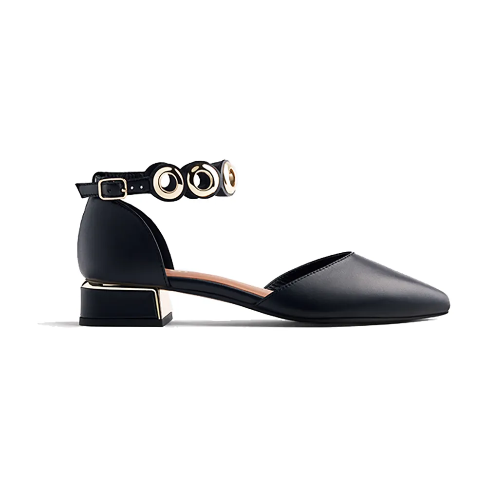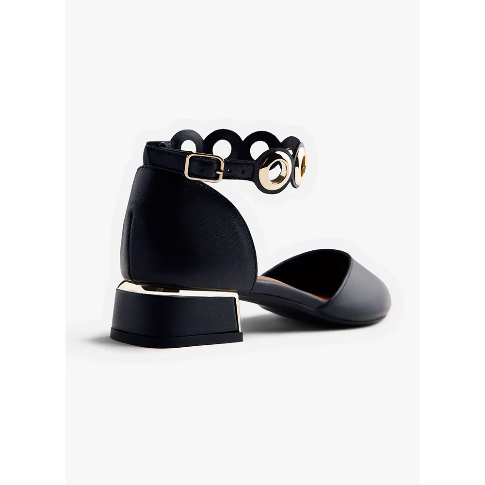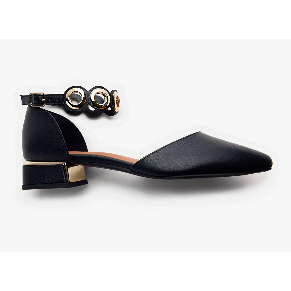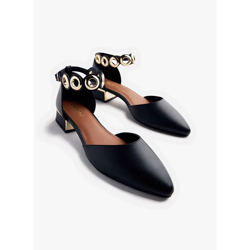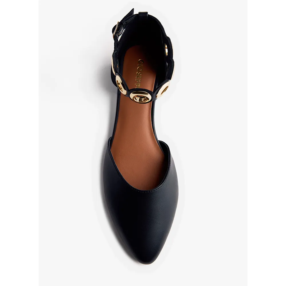 Кожаные балетки с золотистыми люверсами.