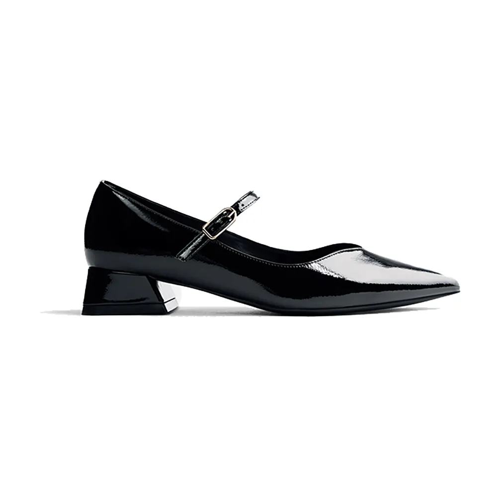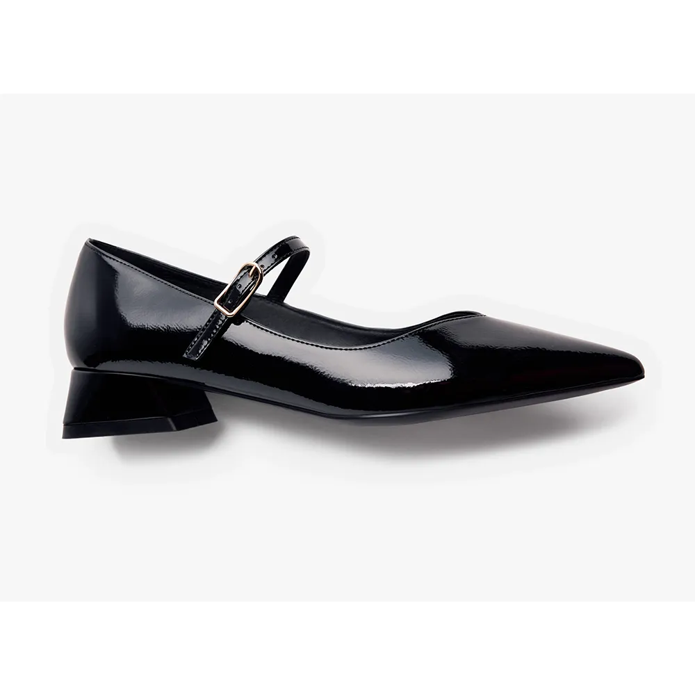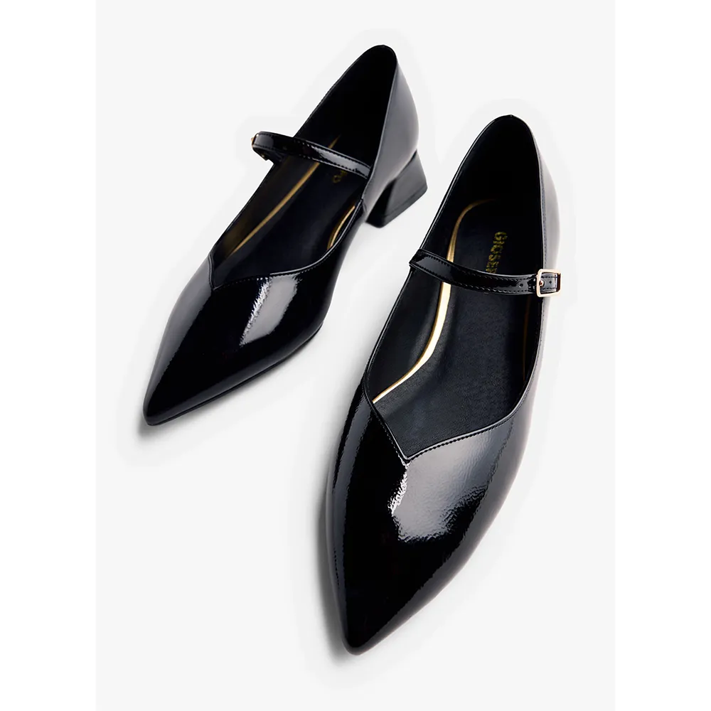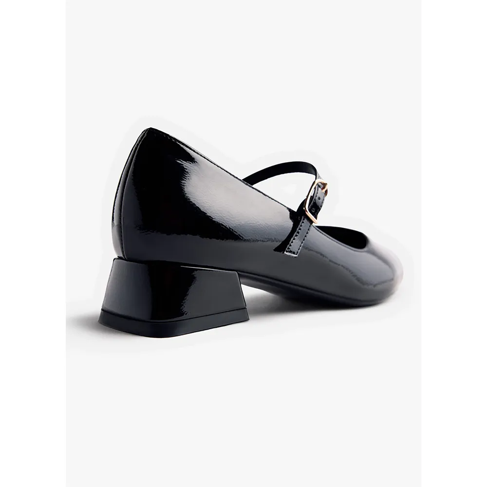 Туфли на каблуке с лакированной отделкой.