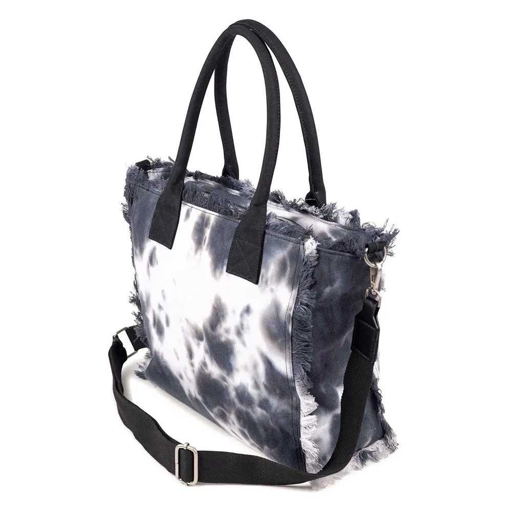 Окунитесь в самый аутентичный стиль сезона с этой сумкой-шоппером из эксклюзивной коллекции Scuba. Изготовленная из хлопкового холста с современным эффектом «тай-дай», эта сумка выделяется бахромой по краям, которая придает ей богемный и расслабленный вид. Ее большой объем в 13 литров делает ее идеальной для того, чтобы взять с собой все необходимое на пляж или в городские поездки. Она оснащена верхними ручками и съемным ремешком для дополнительной универсальности, а также изготовлена из экологически чистых материалов, таких как переработанный хлопок.