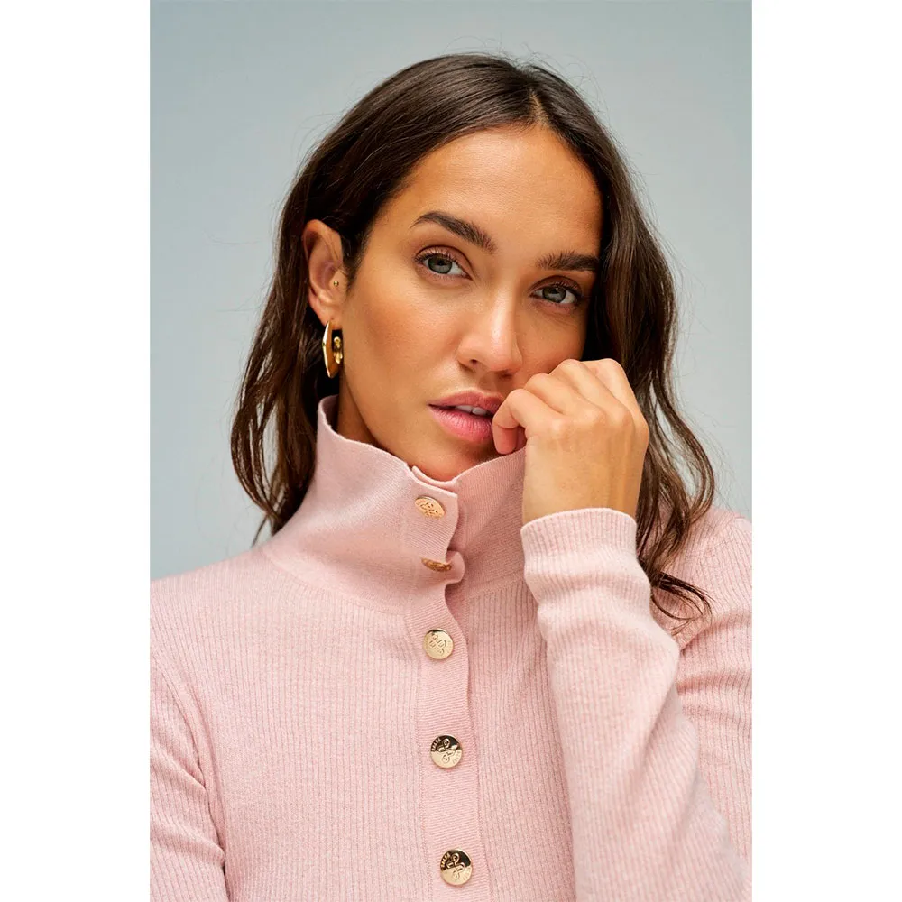 Элегантная и женственная, эта розовая рубашка-поло выделяется золотыми пуговицами, украшающими вырез и воротник.