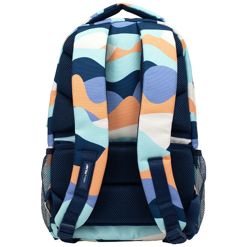 Регулируемые лямки, мягкая и дышащая спинка, усиленное дно и крепление для тележки.