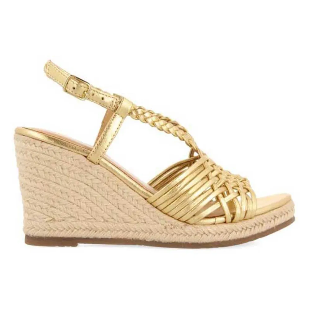 Ваши безошибочные сандалии этого сезона! Золотистые кожаные сандалии с переплетенными ремешками и регулируемой застежкой на щиколотке для большей поддержки.