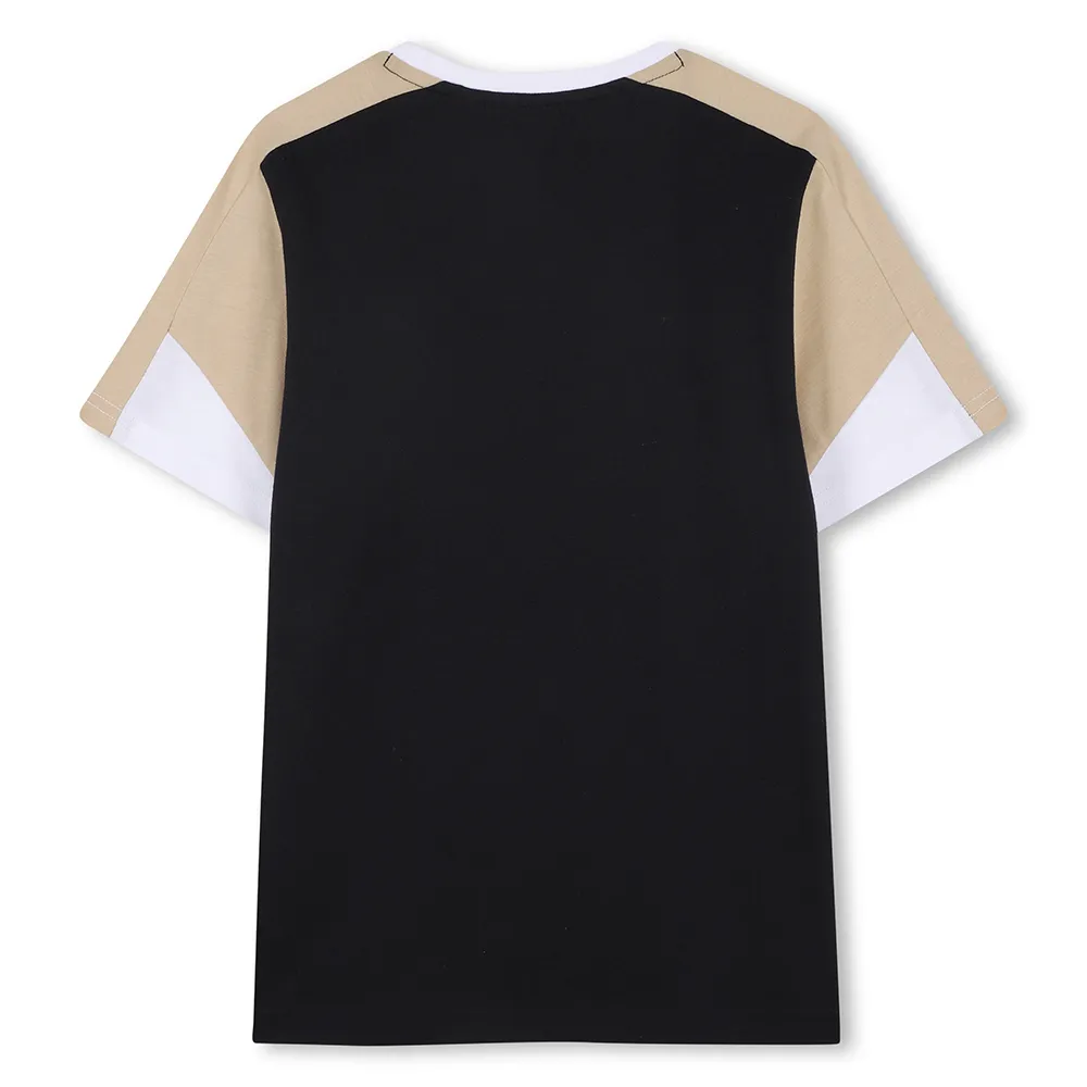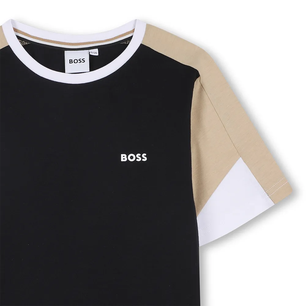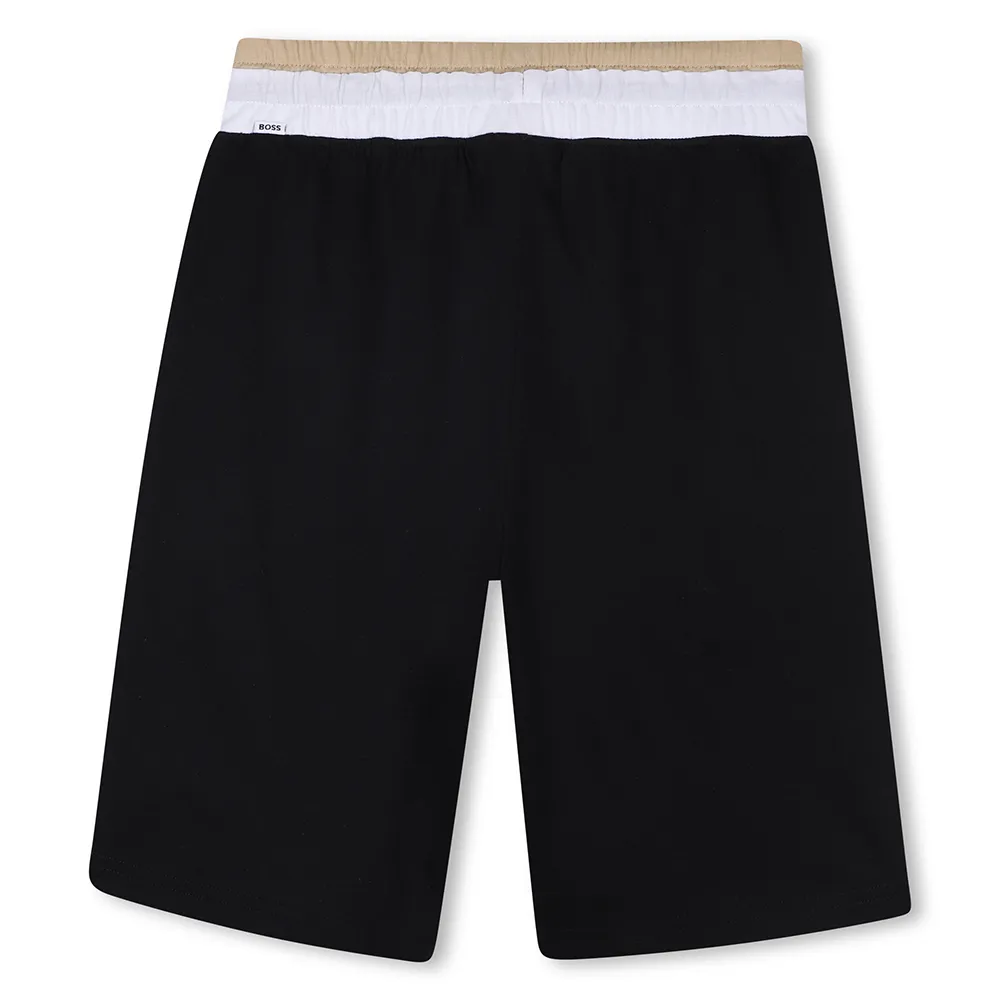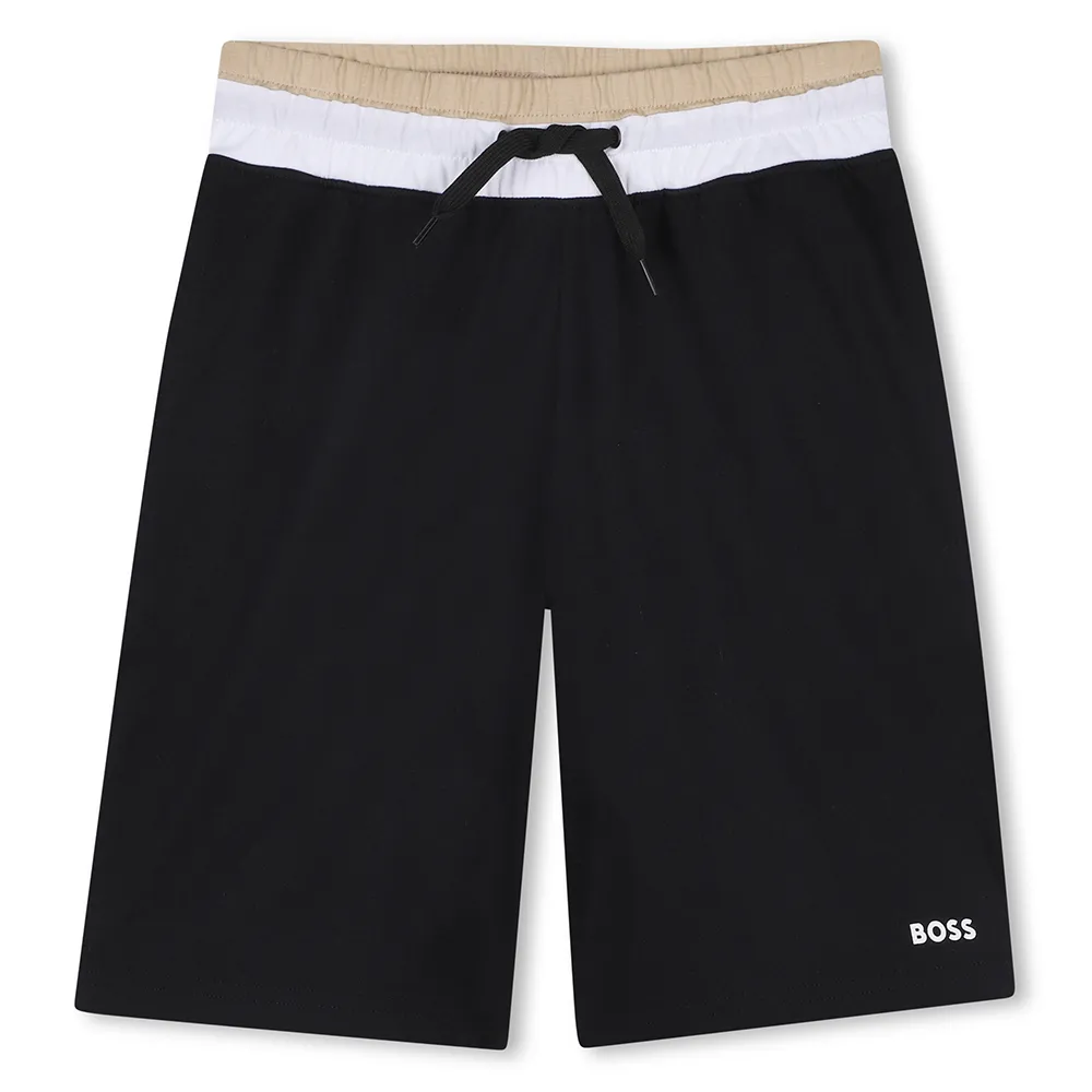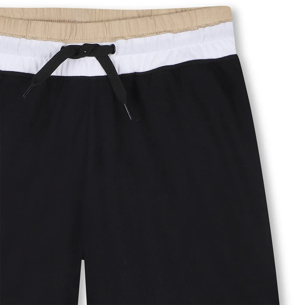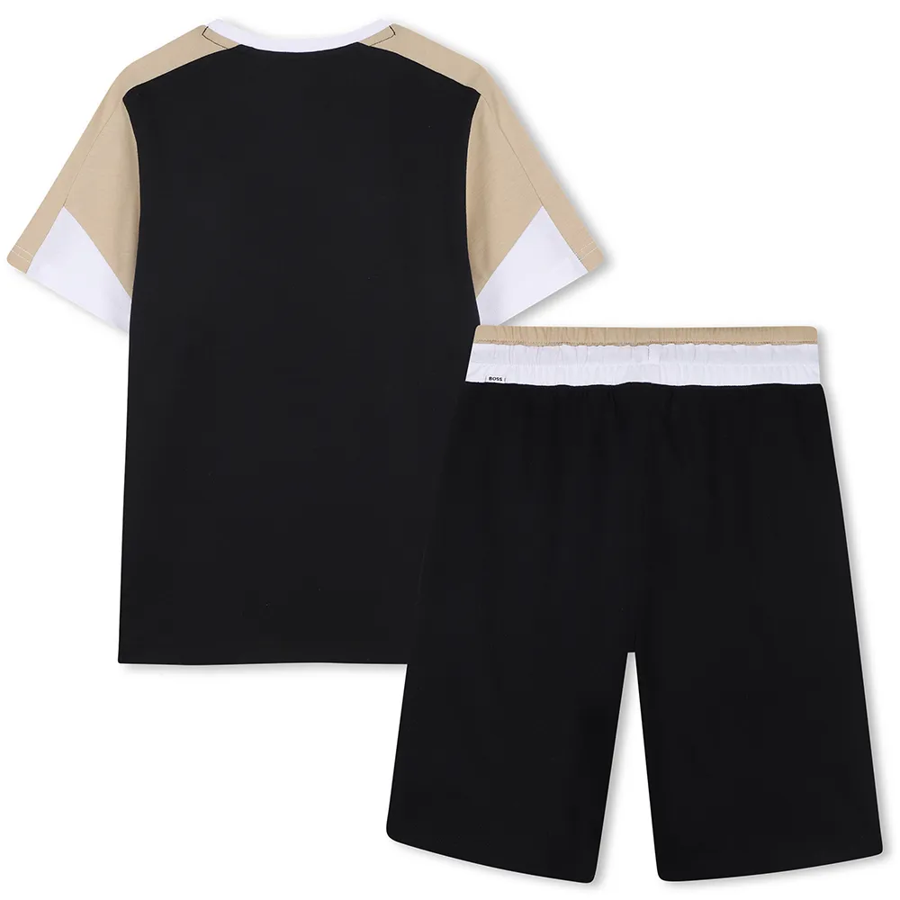 Комплект из футболки и шорт-бермуд из хлопкового трикотажа. Футболка с цветными вырезами на плечах. Логотип BOSS на груди. Шорты-бермуды с эластичным поясом в культовых цветах и регулируемым шнурком. Логотип BOSS напечатан в нижней части. Состав: 100% хлопок. Инструкции по уходу: Машинная стирка в холодной воде, не отбеливать, не сушить в сушилке, гладить при низкой температуре, химчистка запрещена.