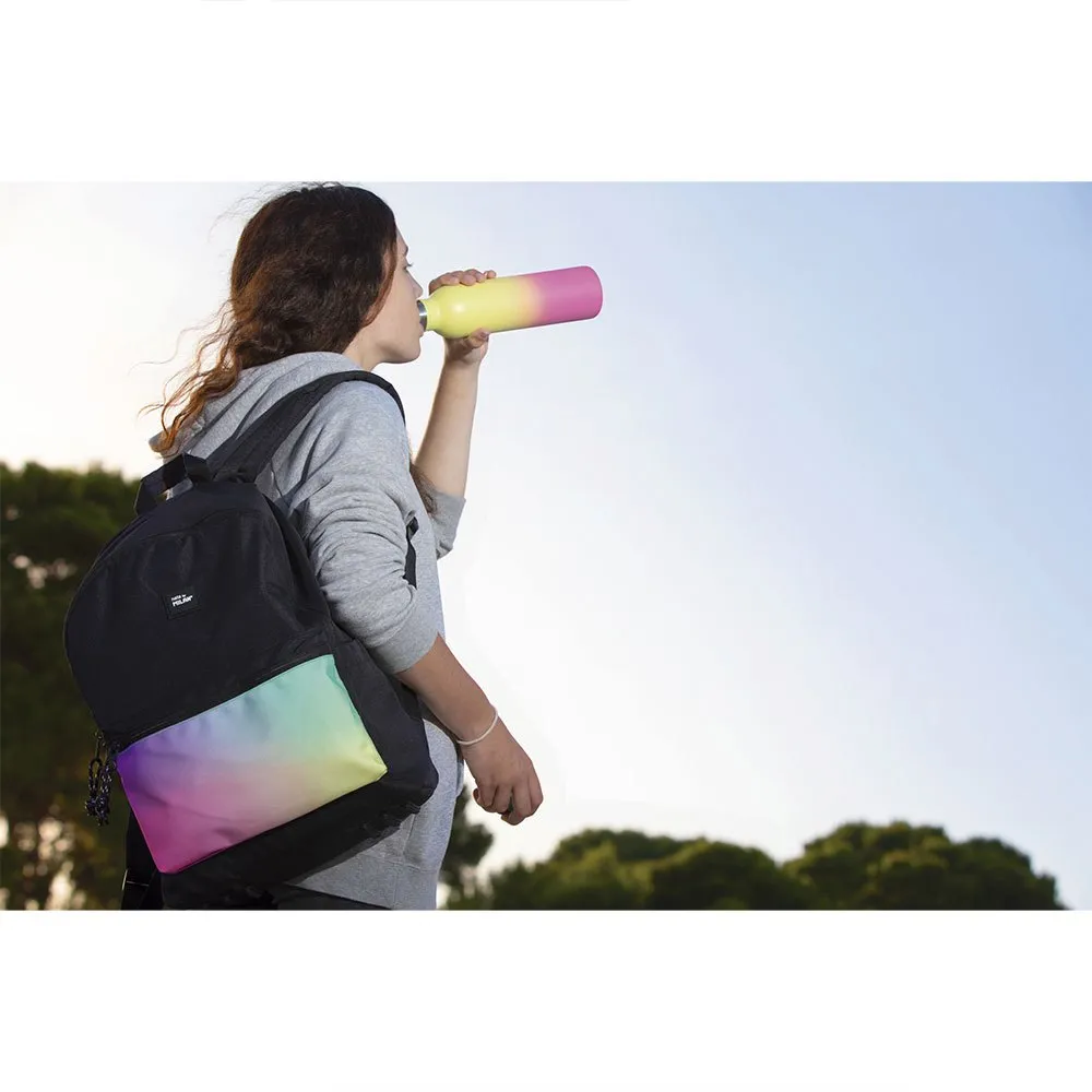 Сочетание градиентных цветов, вдохновленных закатом, с черно-белыми деталями.