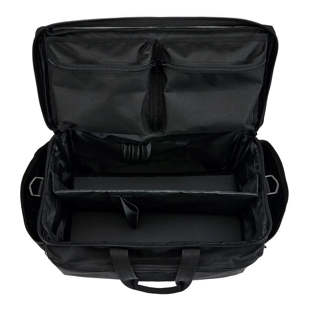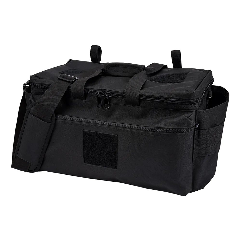 Многофункциональная сумка из прочного полиэстера 600D с покрытием, регулируемой ручкой для переноски, съемным плечевым ремнем, основным отделением на молнии, 1 внешним карманом на молнии и накладным отделением, 2 внешними боковыми карманами с петлями системы Molle, 2 накладными отделениями сверху, 1 видимым карманом сзади, 2 петлями на липучке сверху, 2 внутренними карманами на крышке на молнии, регулируемой на липучке перегородкой с держателем для ручки и небольшим внутренним карманом.