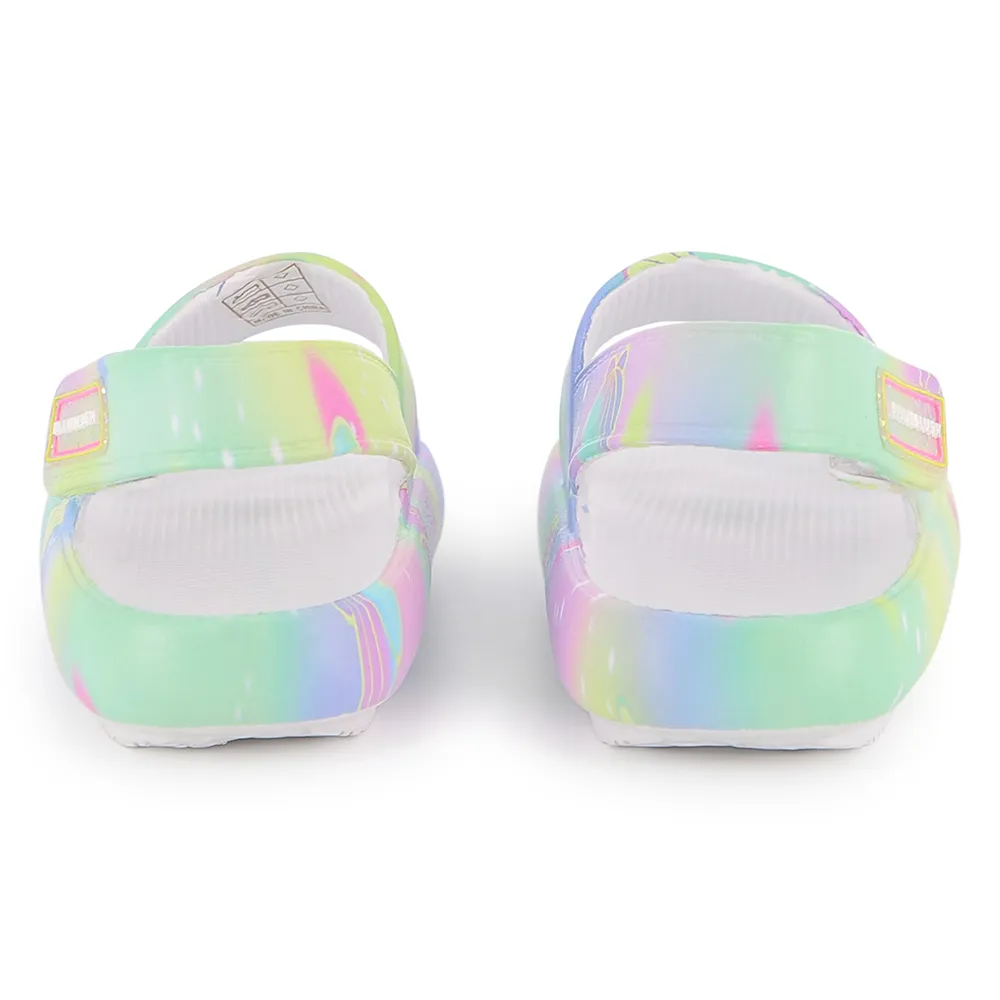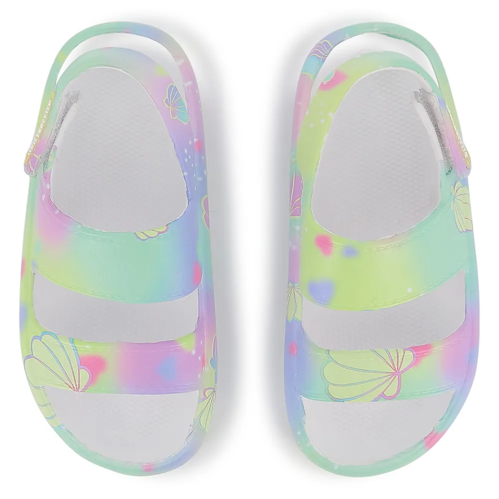 Сандалии из ЭВА с принтом под воду на верхней части. Застежка-липучка на заднем ремешке. Резиновая нашивка с логотипом бренда на ремешке. Подошва из ЭВА. Состав: 100% синтетика - Подкладка: 100% синтетика - Подошва: 100% синтетика. Рекомендации по уходу: Машинная стирка в холодной воде - Не отбеливать - Не сушить в сушильной машине - Гладить при низкой температуре - Не подвергать химчистке