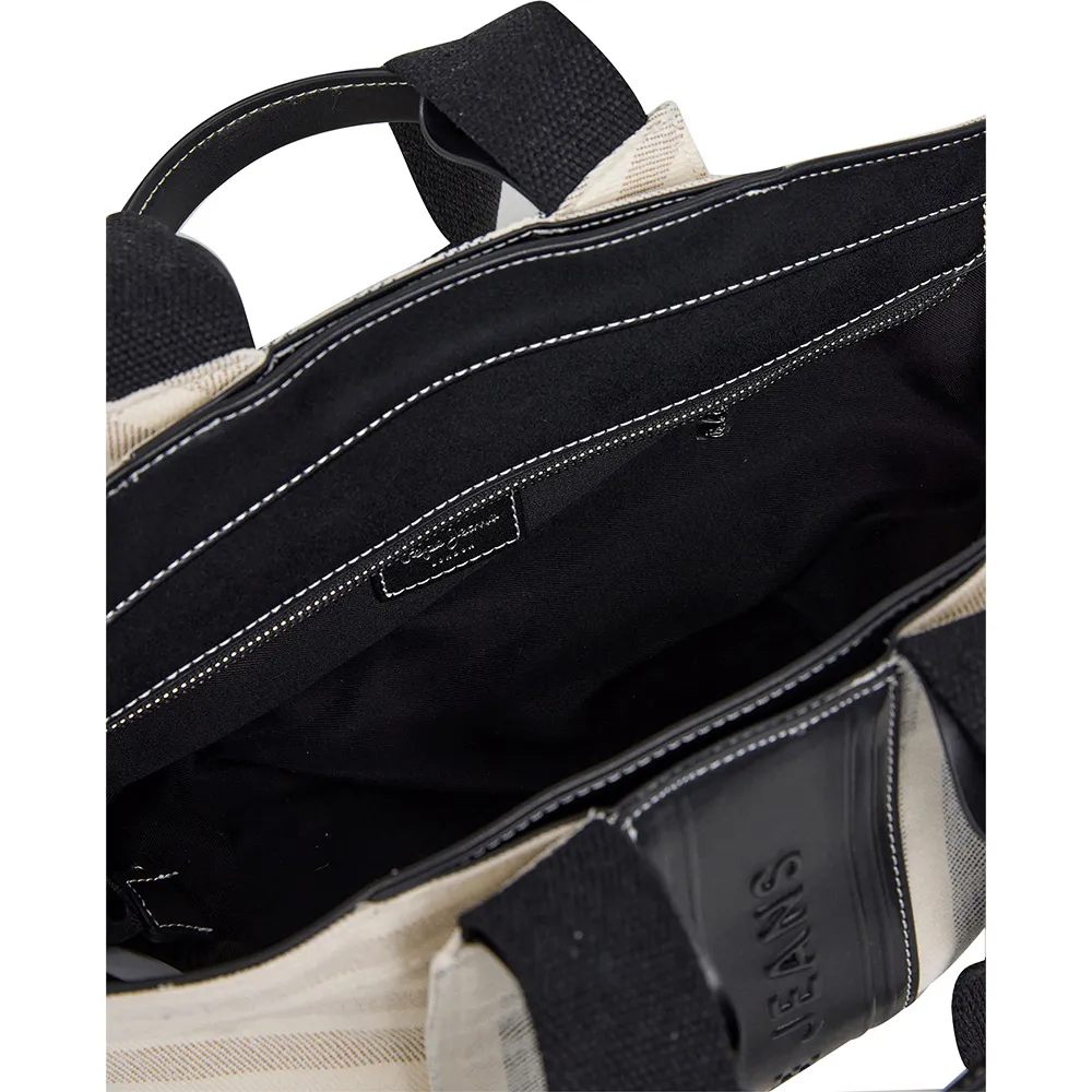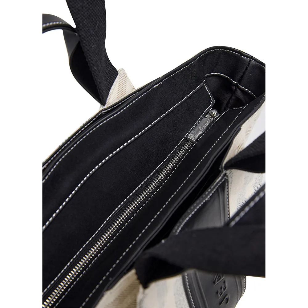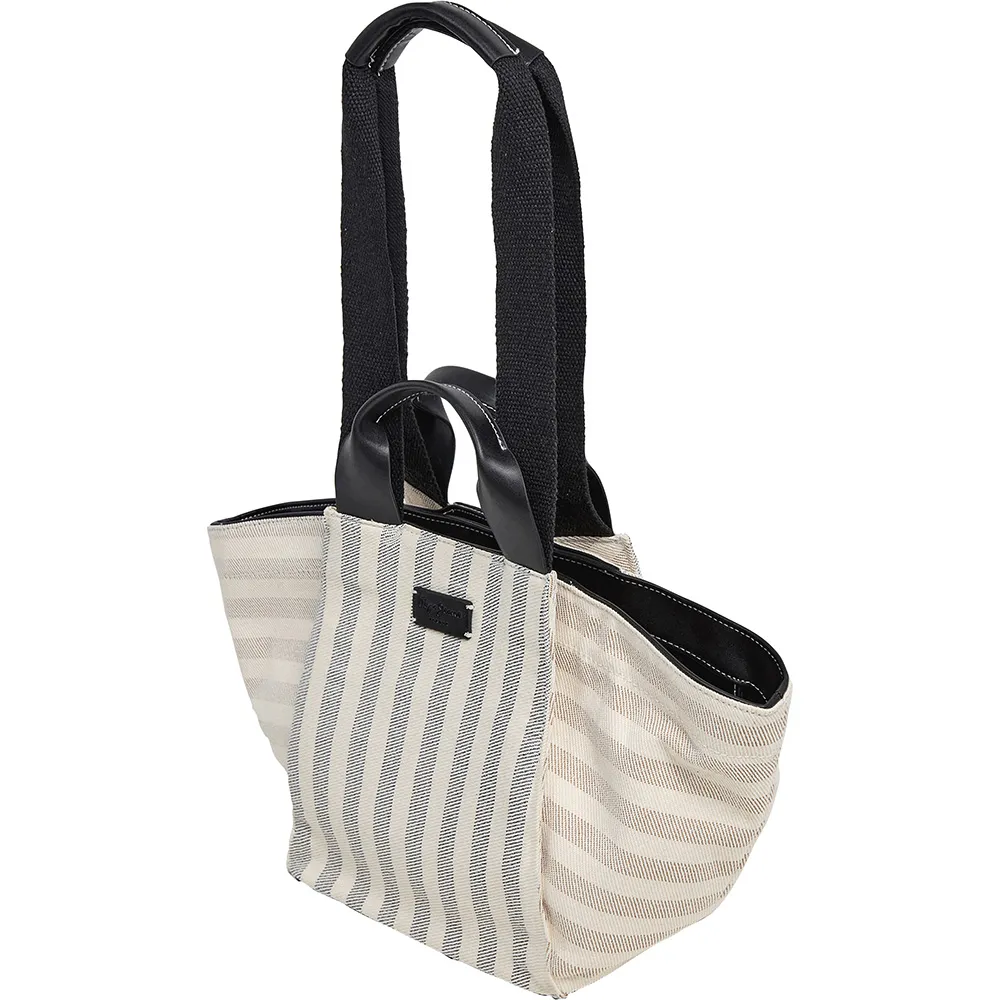 Сумка Aria Niza изготовлена из комбинированного материала: полосатая канва, застежка-молния, двойные тканевые ручки, тканевые плечевые ремни, внутренний карман на молнии, большой тисненый логотип Capital на передней части и тисненый классический логотип на задней части.