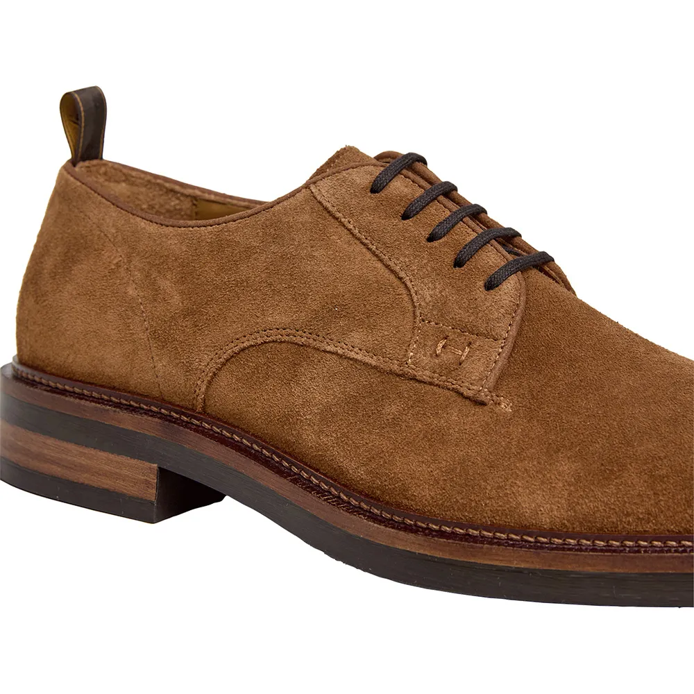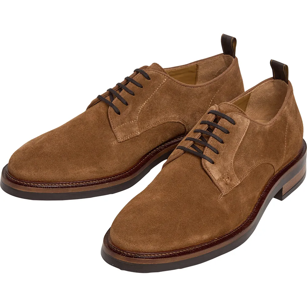 Классические элегантные туфли-дерби Egmont, выполненные из замши, с подкладкой из натуральной кожи, съемной кожаной стелькой и подошвой из ТПУ с противоскользящим покрытием, кожаной окантовкой и вышитым вручную логотипом «h» на шнуровке.