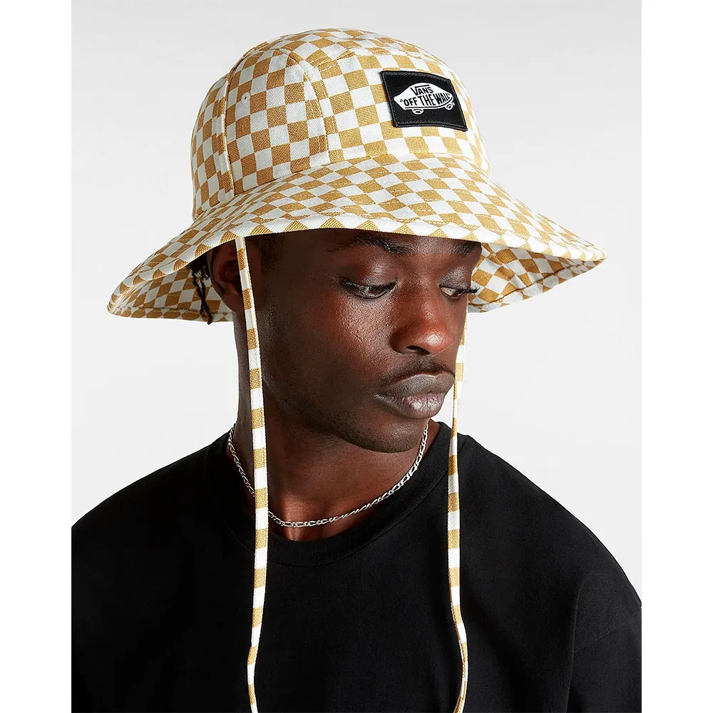 Панама Sunny Side - это панама с широкими полями, ремешками под подбородком, принтом на внутренней стороне козырька и тканевой этикеткой.