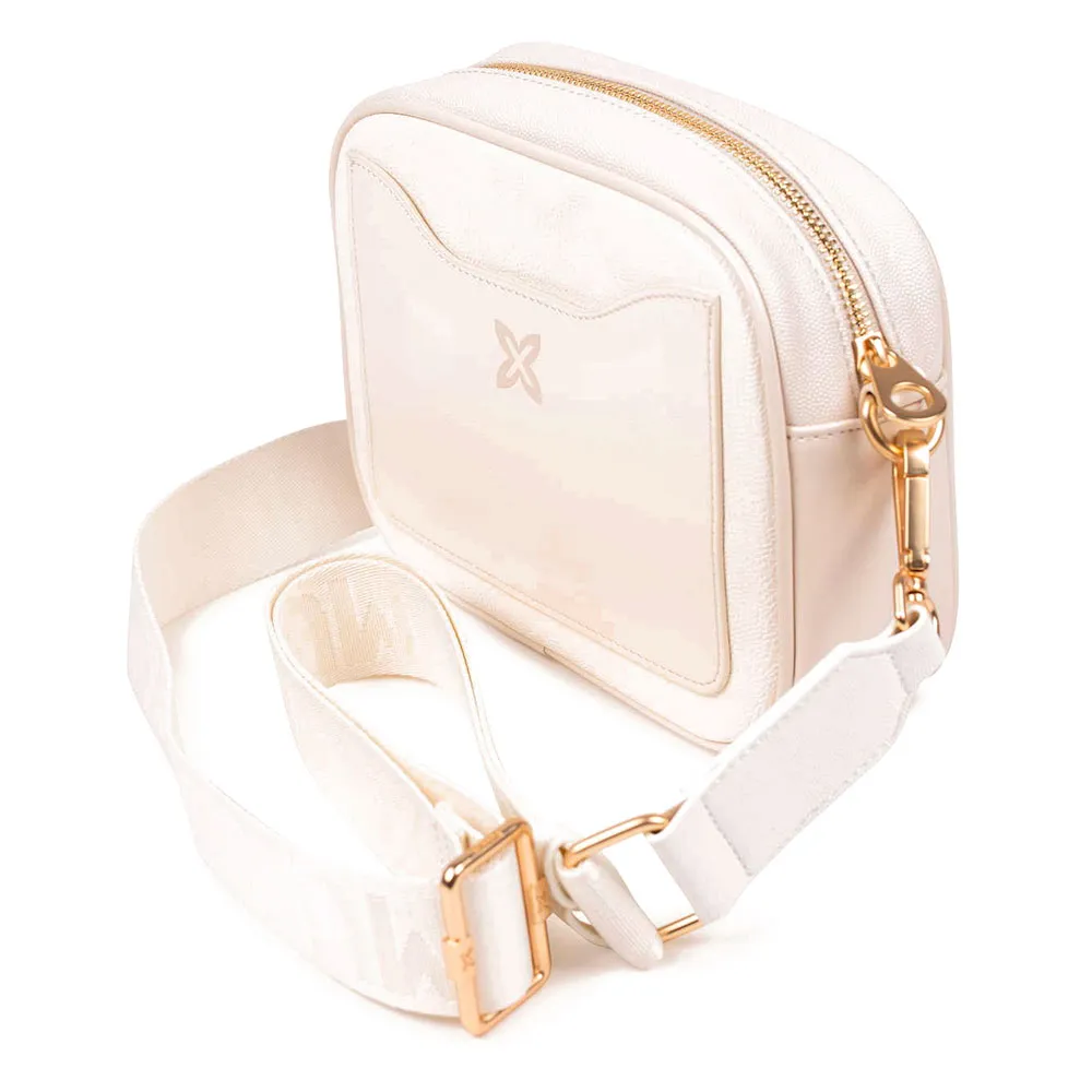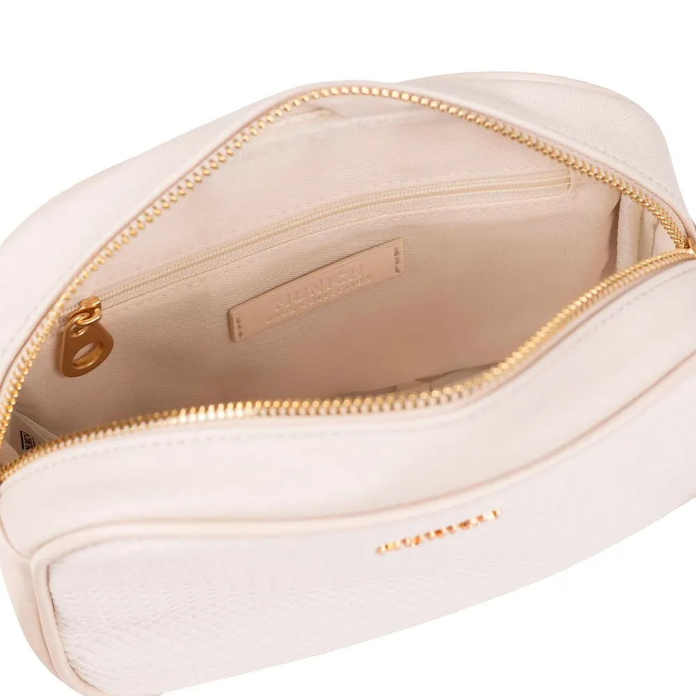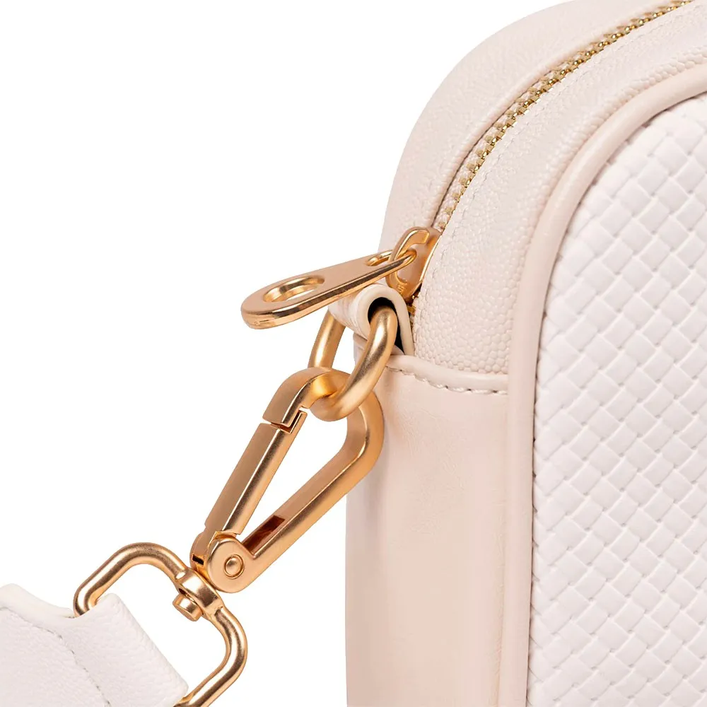 Эта сумка через плечо выделяется элегантной кремовой отделкой с геометрическим тиснением и металлическими деталями, которые придают ей изысканный и современный стиль. Ее функциональный дизайн включает в себя заднее отделение для быстрого доступа и внутренний карман на молнии для организации личных вещей. Это идеальный аксессуар для повседневного офисного образа или для выходных прогулок, где вы цените комфорт, не жертвуя при этом элегантностью универсального аксессуара.