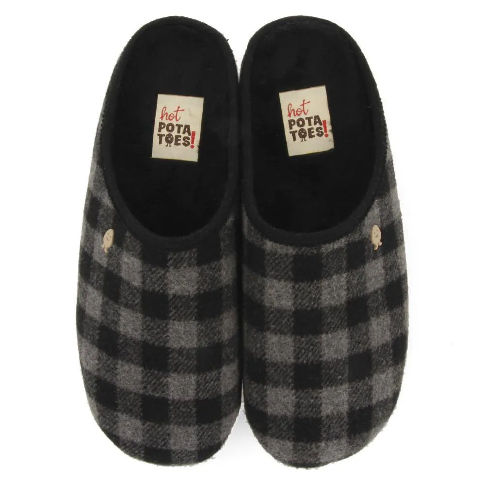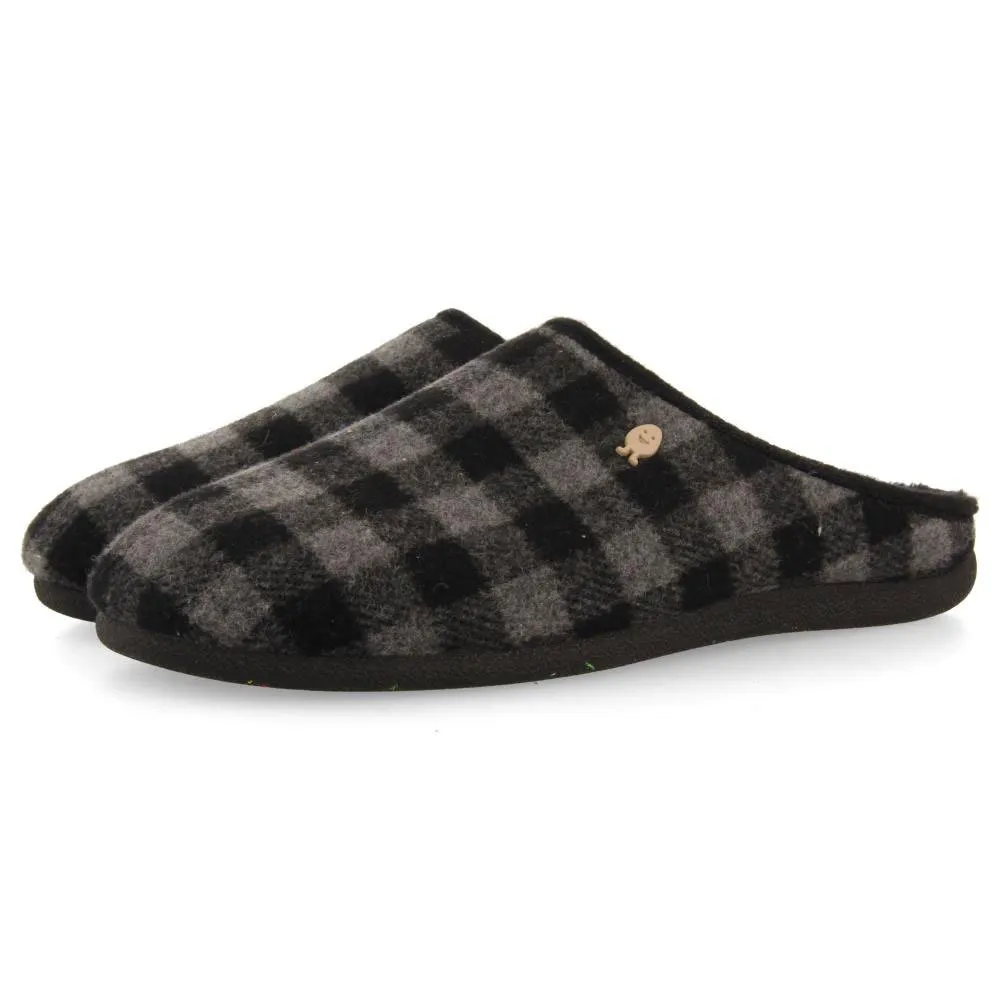 Домашние тапочки в серо-черную клетку.