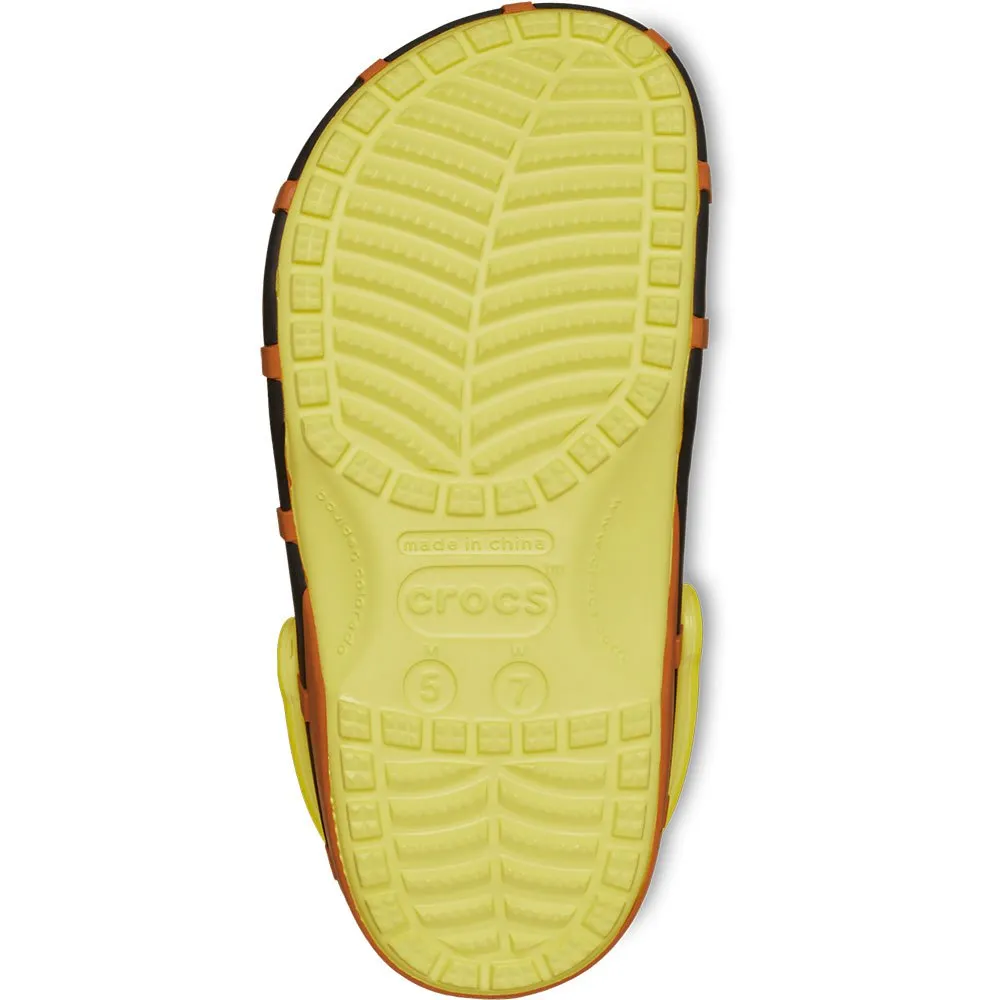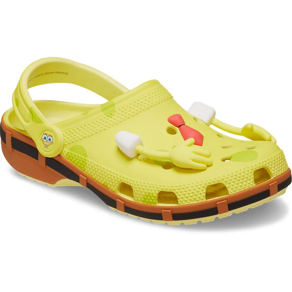 Впитывающие, желтые и пористые - классические сабо Губки Боба уже здесь! Эта эксклюзивная модель украшена принтом по всей поверхности, напоминающим Губку Боба Квадратные Штаны в виде обуви, с подвижными ручками Jibbitz.