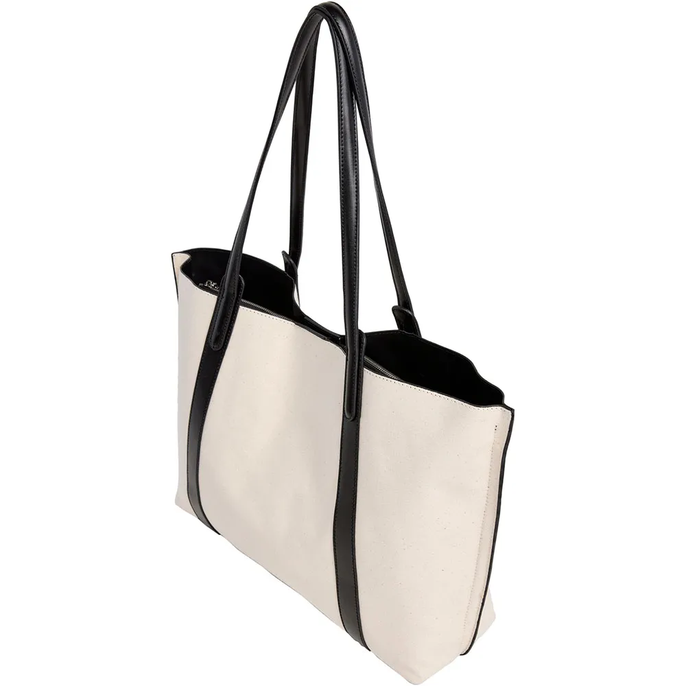 Сумка-шоппер Audrey Tale изготовлена из комбинированных материалов, включая ткань, имеет магнитную застежку, несколько отделений, одно из которых закрывается на молнию, двойные плечевые ремни и классический логотип на передней части.