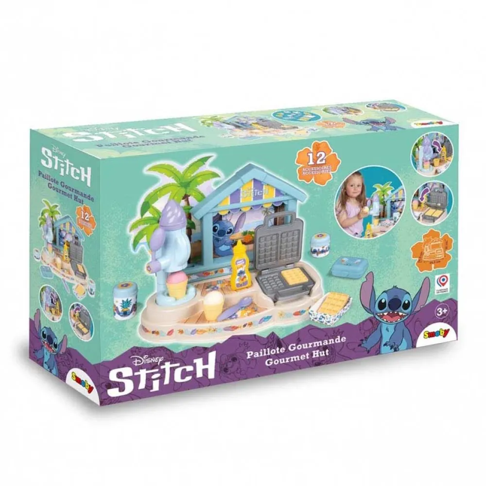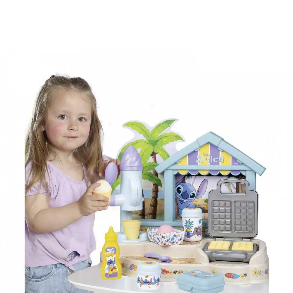 Угостите своих друзей мороженым из набора «Хижина гурмана Стича». В комплекте 12 аксессуаров, волшебная мороженица и вафельница, так что вы можете пригласить друзей на мороженое или даже приготовить вкусные вафли и добавить топпинги, используя разные бутылочки.