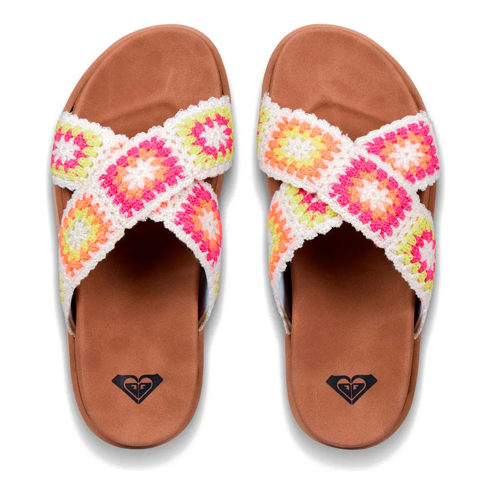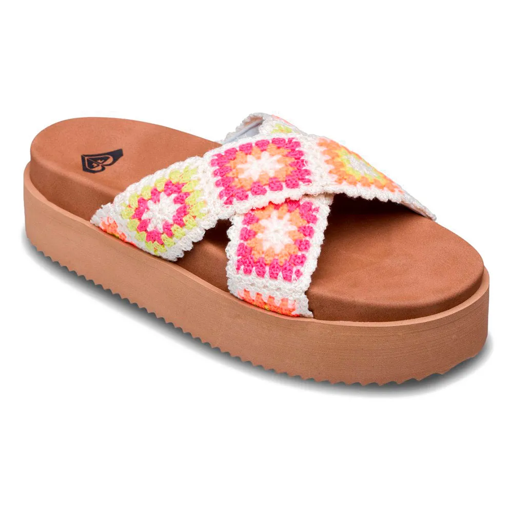 Верх: Текстиль, связанный крест-накрест, Стелька: Стелька из переработанного полиуретана с анатомической поддержкой, обтянутая синтетической кожей и украшенная лазерной гравировкой логотипа Roxy, Подошва: Подошва из переработанного термопластичного каучука с традиционным рисунком Roxy.