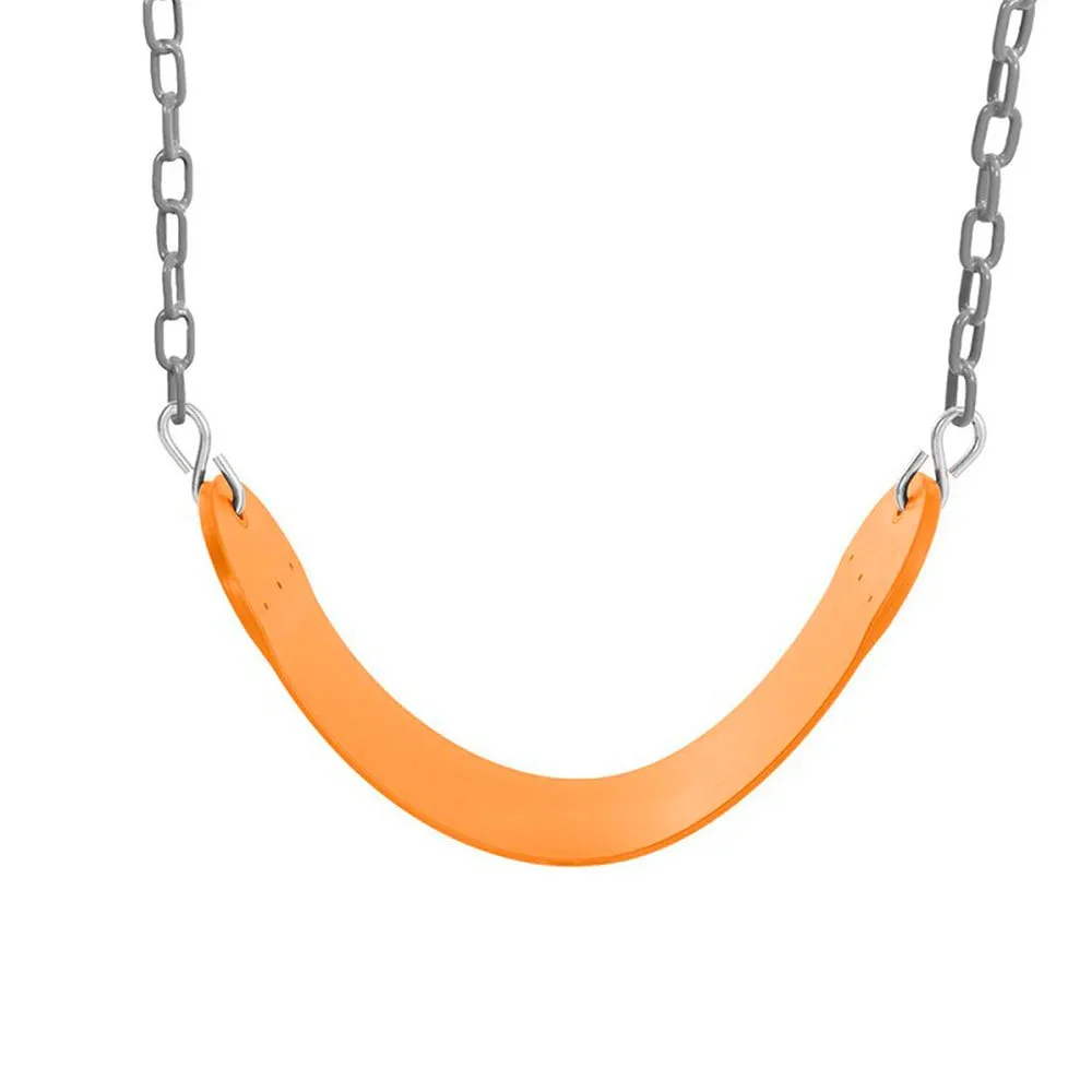 Качели оснащены гибким сиденьем из прочного и износостойкого пластика.