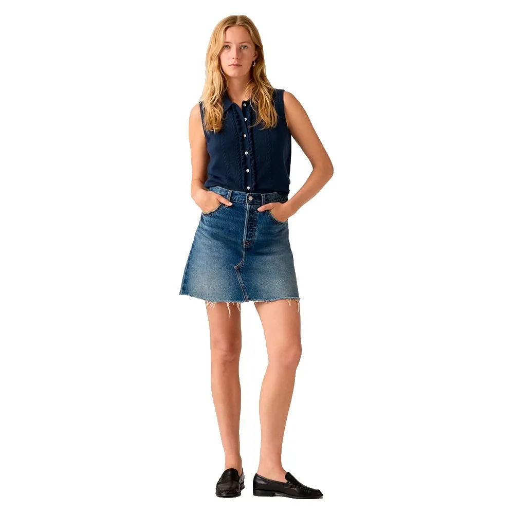 Наша юбка Deconstructed имеет длину до середины бедра и необработанный край для дополнительной выразительности.
