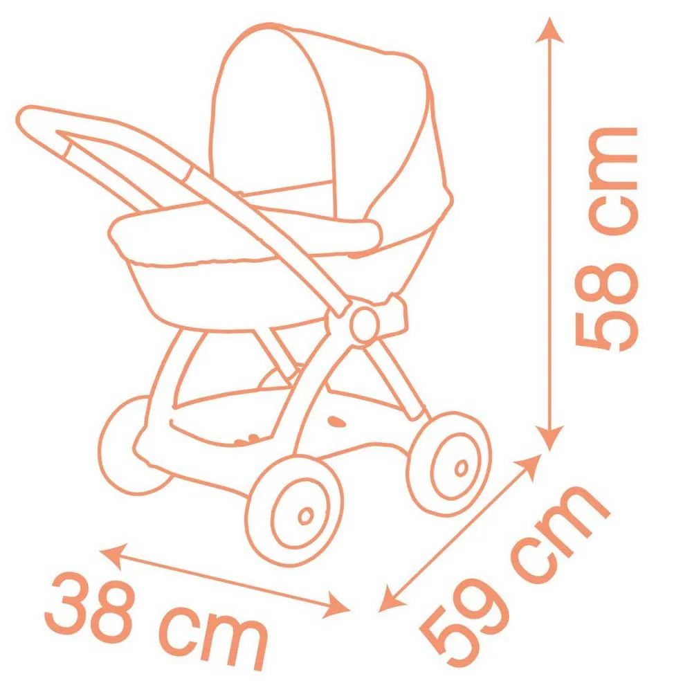 - Высота ручки: 58 см. - Подходит для всех кукол ростом до 42 см. - Размеры: 57 x 38 x 58 см. - Рекомендуемый возраст: 1-6 лет