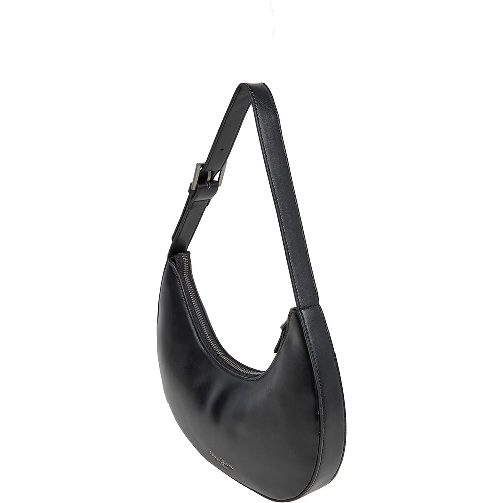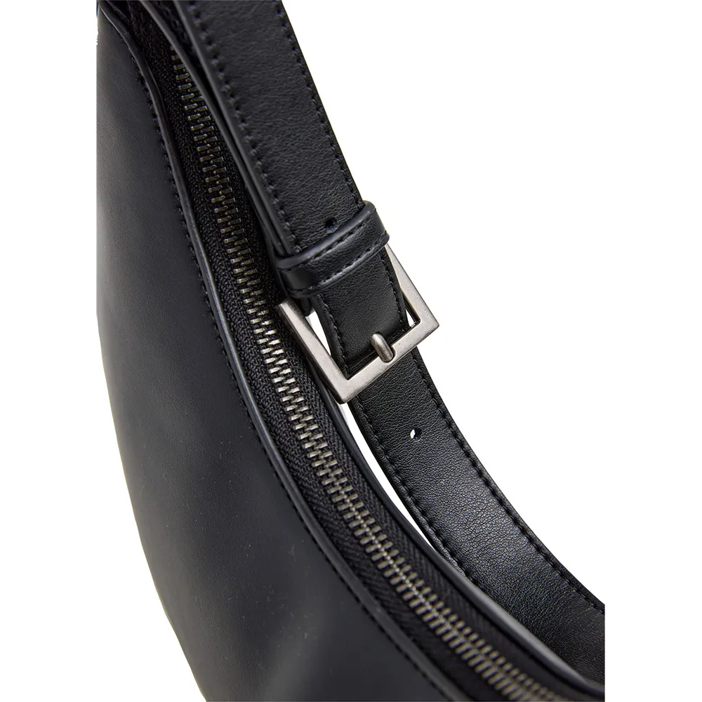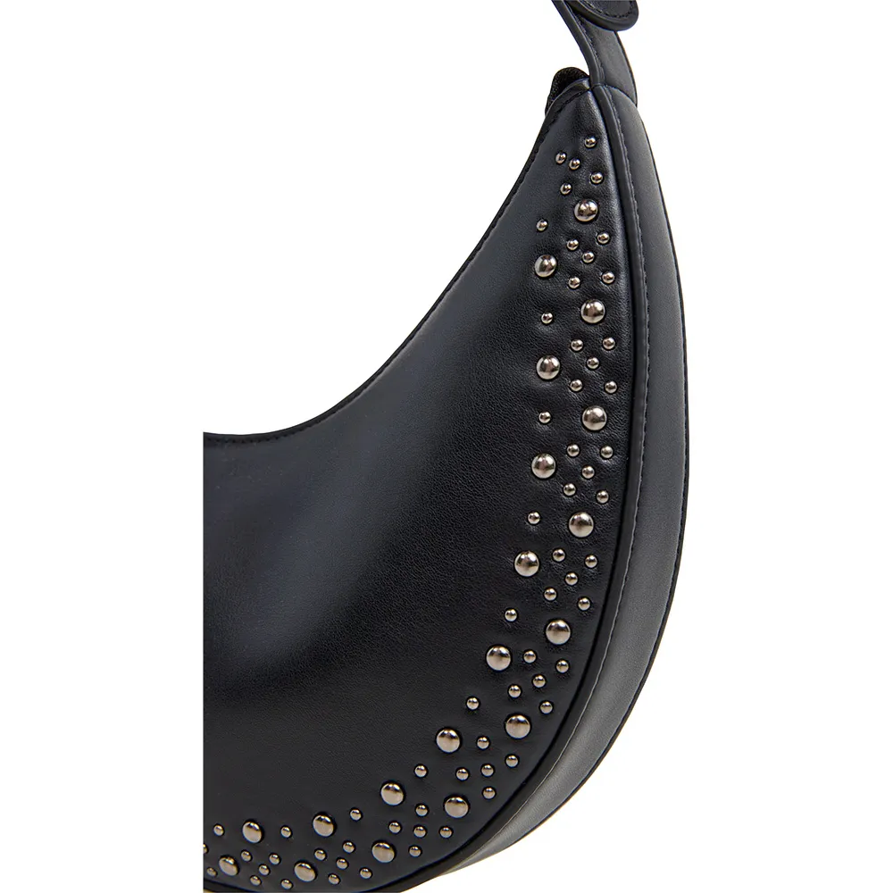 Сумка Tricia в форме полумесяца с основным отделением, застежкой-молнией, регулируемым плечевым ремнем, персонализированной застежкой-молнией, двумя внутренними карманами, декоративными заклепками спереди и тисненым классическим логотипом сзади.