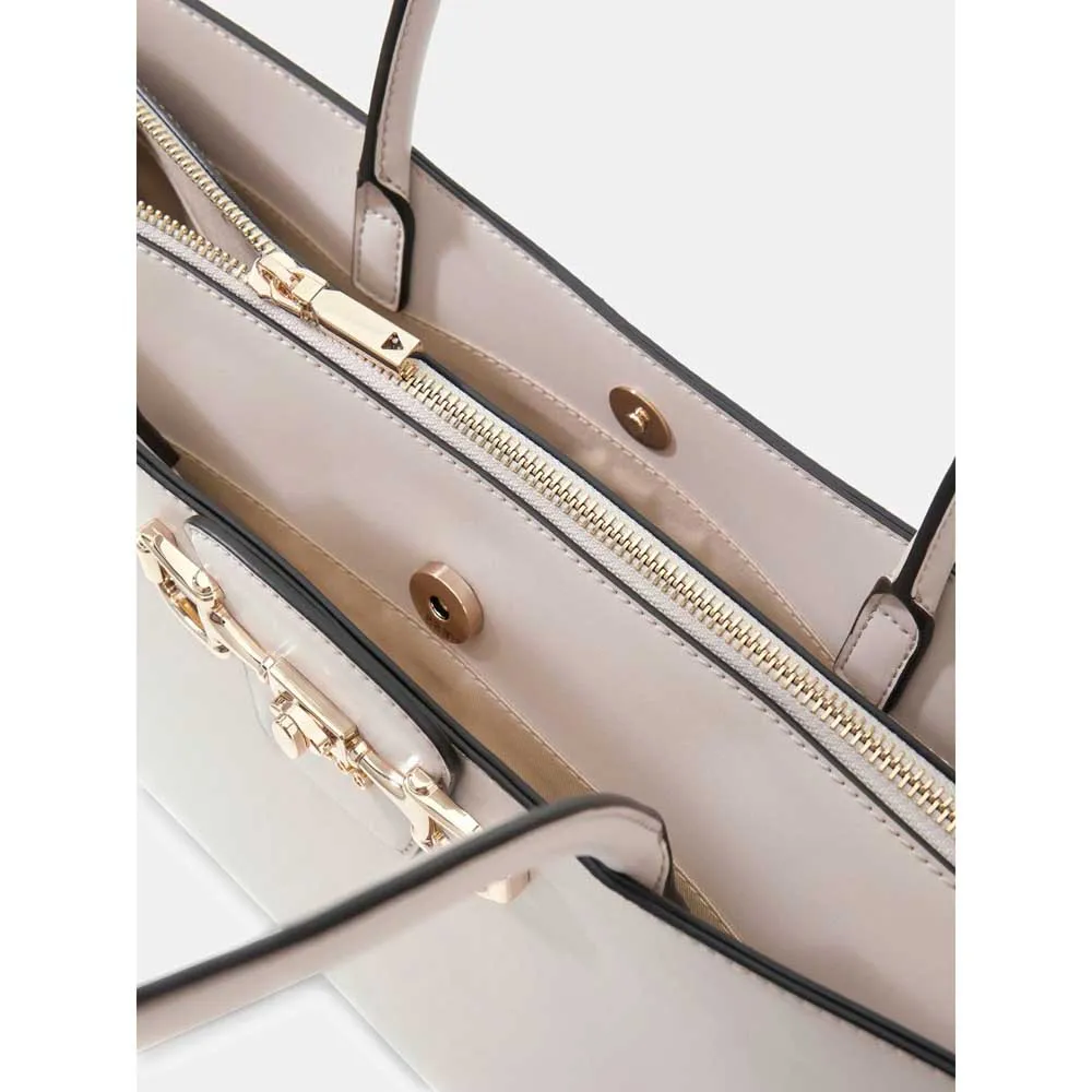 - Внешняя отделка из искусственной кожи. - Застежка на магнитную кнопку и молнию. - Фурнитура золотистого цвета. - Внутренний карман на молнии. - Подкладка с персонализированным логотипом. - Брелок с логотипом у основания ручки.