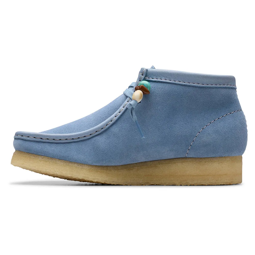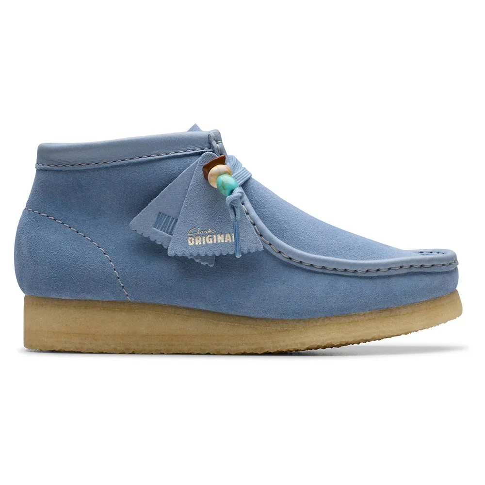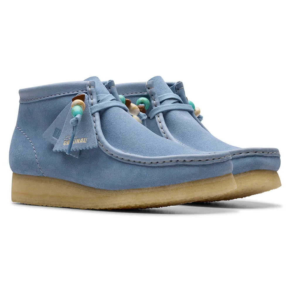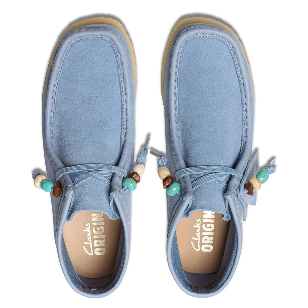 Чистые, простые и вневременные, наши культовые ботинки Wallabee в этом сезоне представлены в свежем цвете «пудрово-голубая замша».
