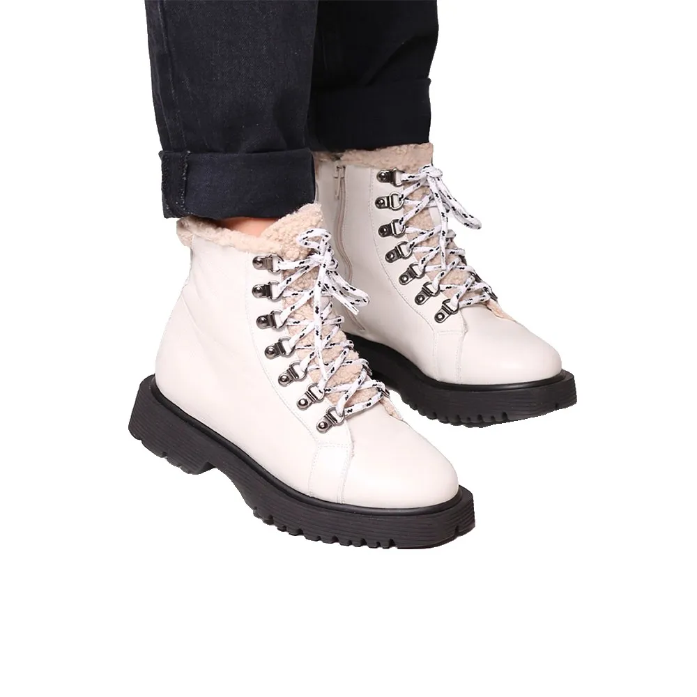 Женские ботильоны из гладкой кожи с подкладкой из овчины.