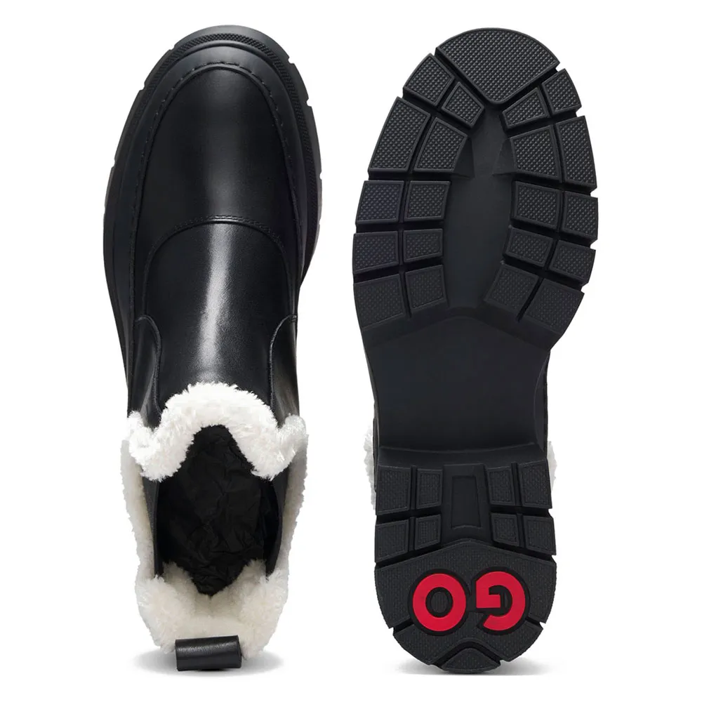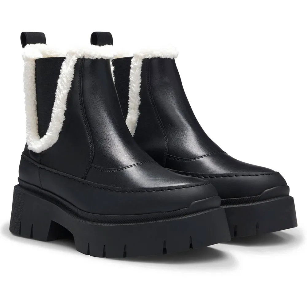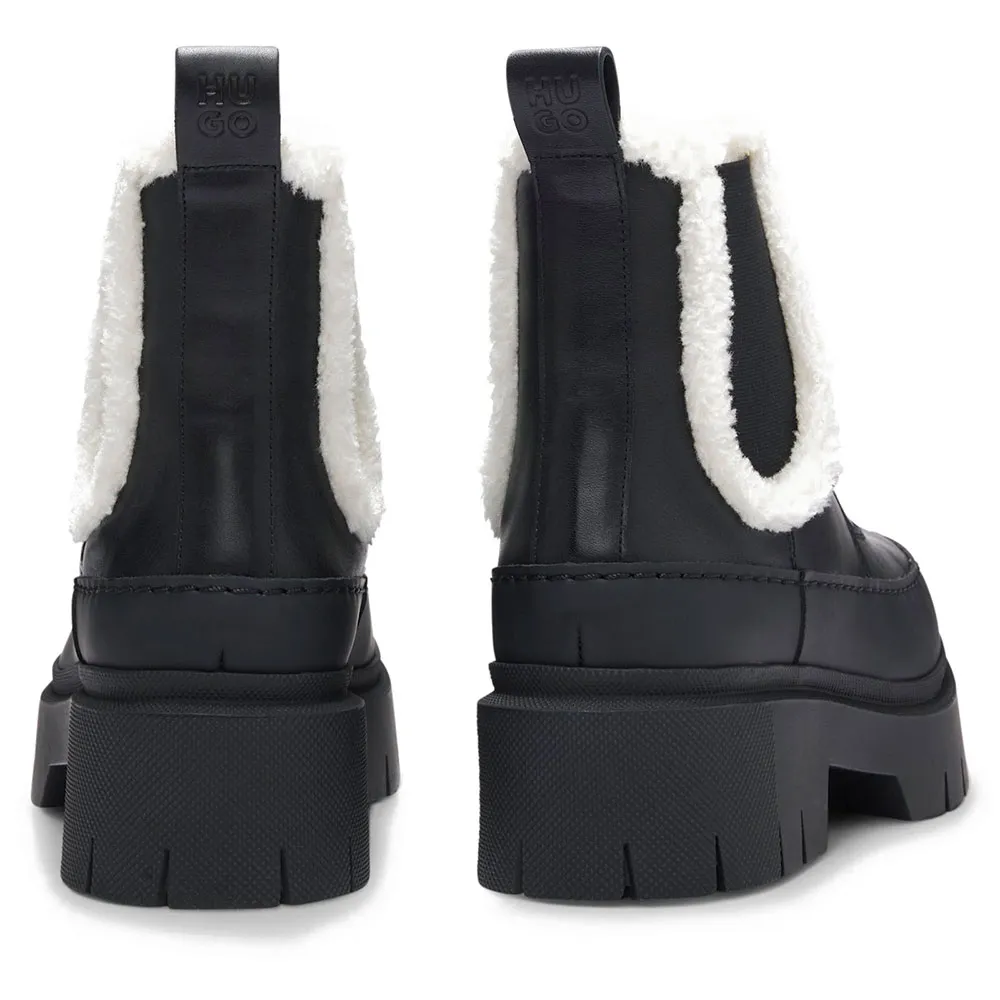 Эти женские ботинки челси от HUGO, изготовленные из гладкой кожи, имеют отделку из искусственного меха, что придает им уют и создает неожиданный эффект. Массивная резиновая подошва.