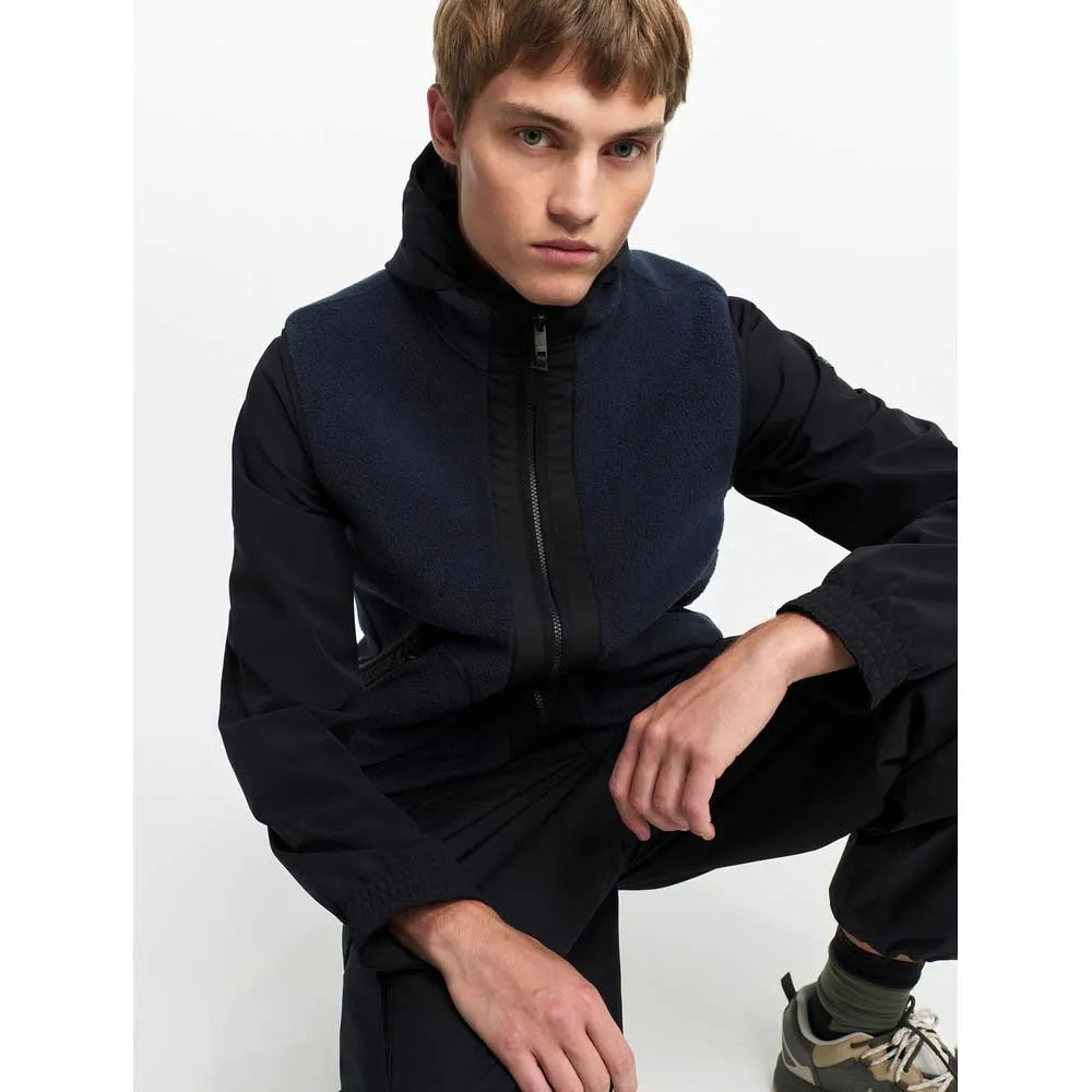 Этот двусторонний жилет можно носить как самостоятельно поверх свитера, так и под паркой. Эта куртка оснащена нашей системой крепления T-KIT, позволяющей комбинировать ее с другими вещами с рукавами из коллекции T-KIT в зависимости от погоды и ваших стилевых предпочтений.