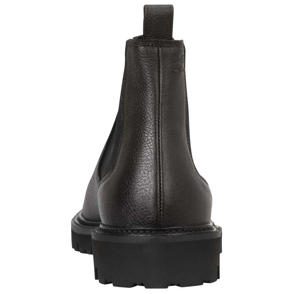 Эти мужские ботинки челси от BOSS с массивной рифленой подошвой - это усовершенствованная интерпретация классической повседневной модели. Верх из зернистой кожи. Эластичные вставки. В этом изделии использовано не менее 60% более качественного сырья. Мы постоянно ищем более ответственные способы производства и отделки нашей продукции. Не менее 60% кожи, используемой для изготовления этого изделия, получено от сертифицированных кожевенных заводов.