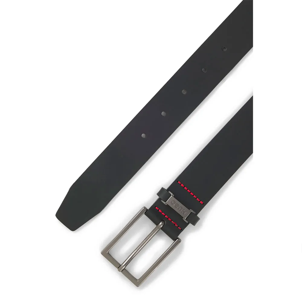 Фирменный пояс с металлическим логотипом на петле от HUGO Menswear. Этот аксессуар шириной 3,5 см изготовлен из гладкой буйволовой кожи. Для оптимальной посадки мы рекомендуем заказывать пояс на один размер больше, чем ваш обхват талии. В этом изделии используется не менее 60% более качественного сырья. Мы постоянно ищем более ответственные способы производства и отделки нашей продукции. Минимум 60% кожи, используемой для изготовления этого изделия, получено от сертифицированных кожевенных заводов.