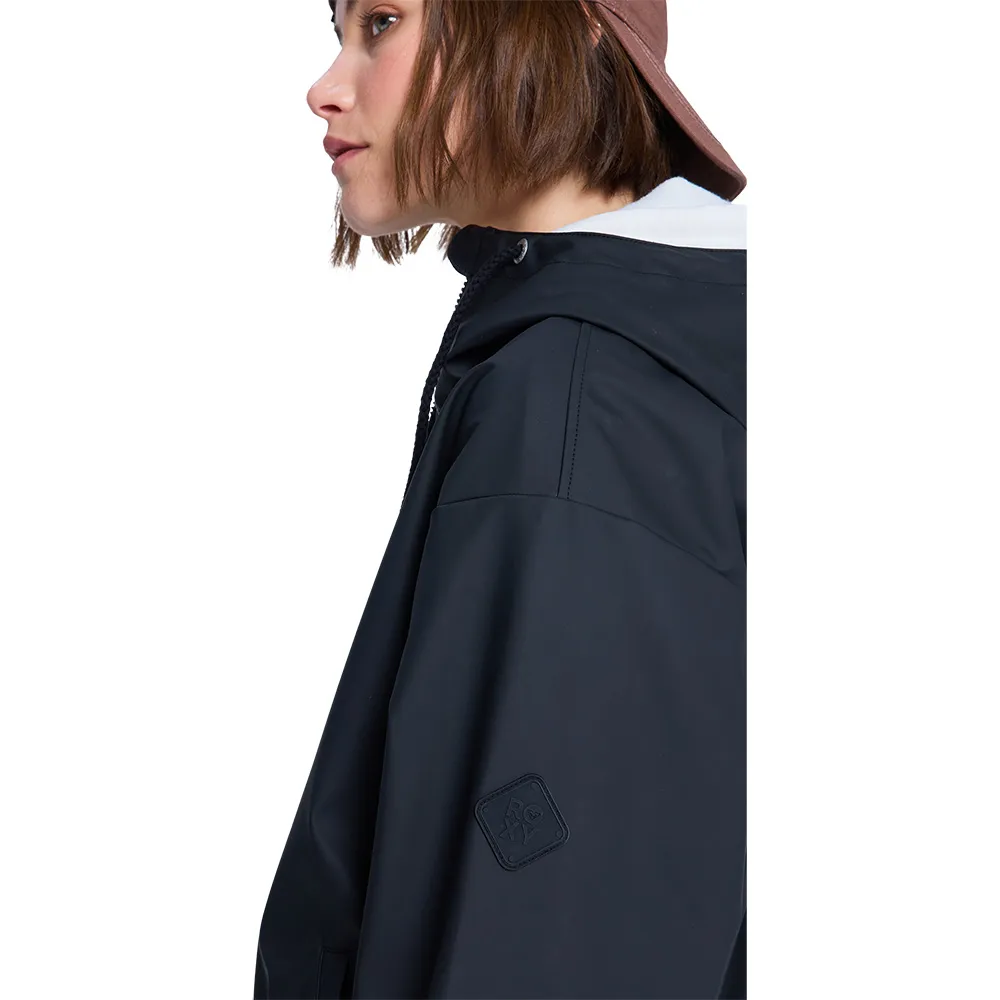 Ткань: Легкая, прочная, водонепроницаемая полиэстеровая ткань (170 г/м2), Крой: Обычный, укороченный, Капюшон: Прочный капюшон контрастных цветов, Карманы: Боковые карманы, Застежка: Молния спереди, Силиконовый значок ROXY, Шнурок на капюшоне, Люверсы под мышками.