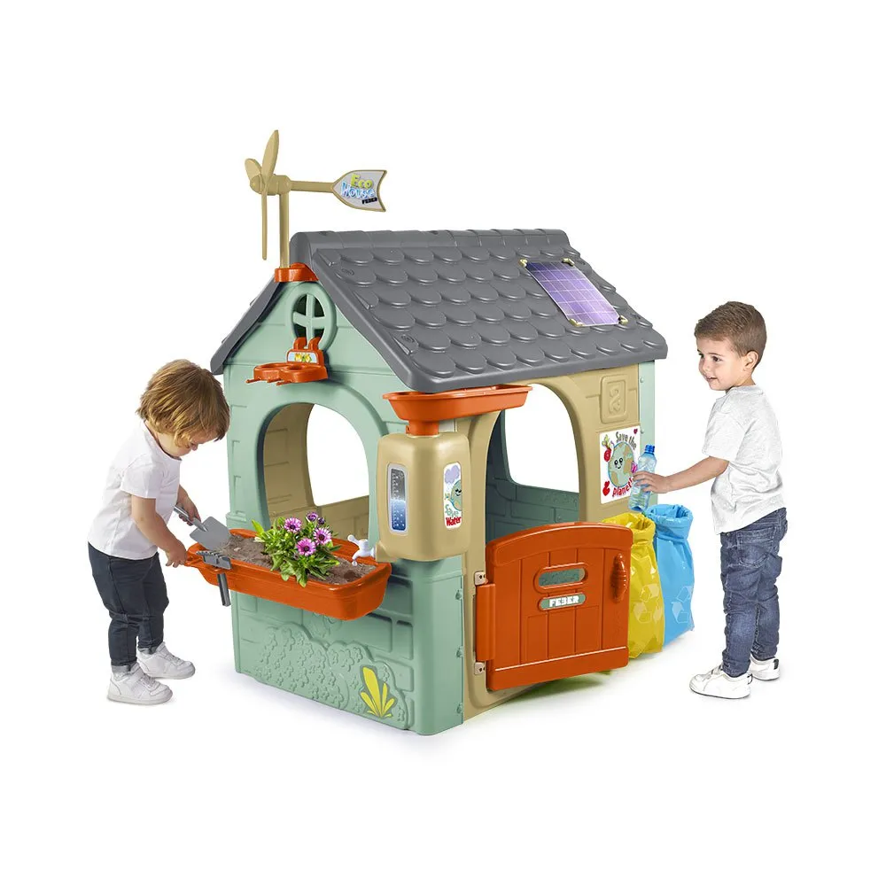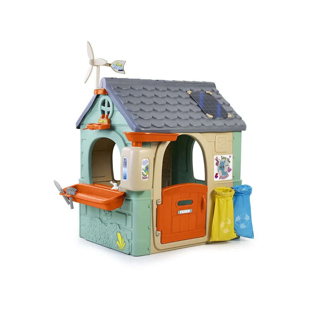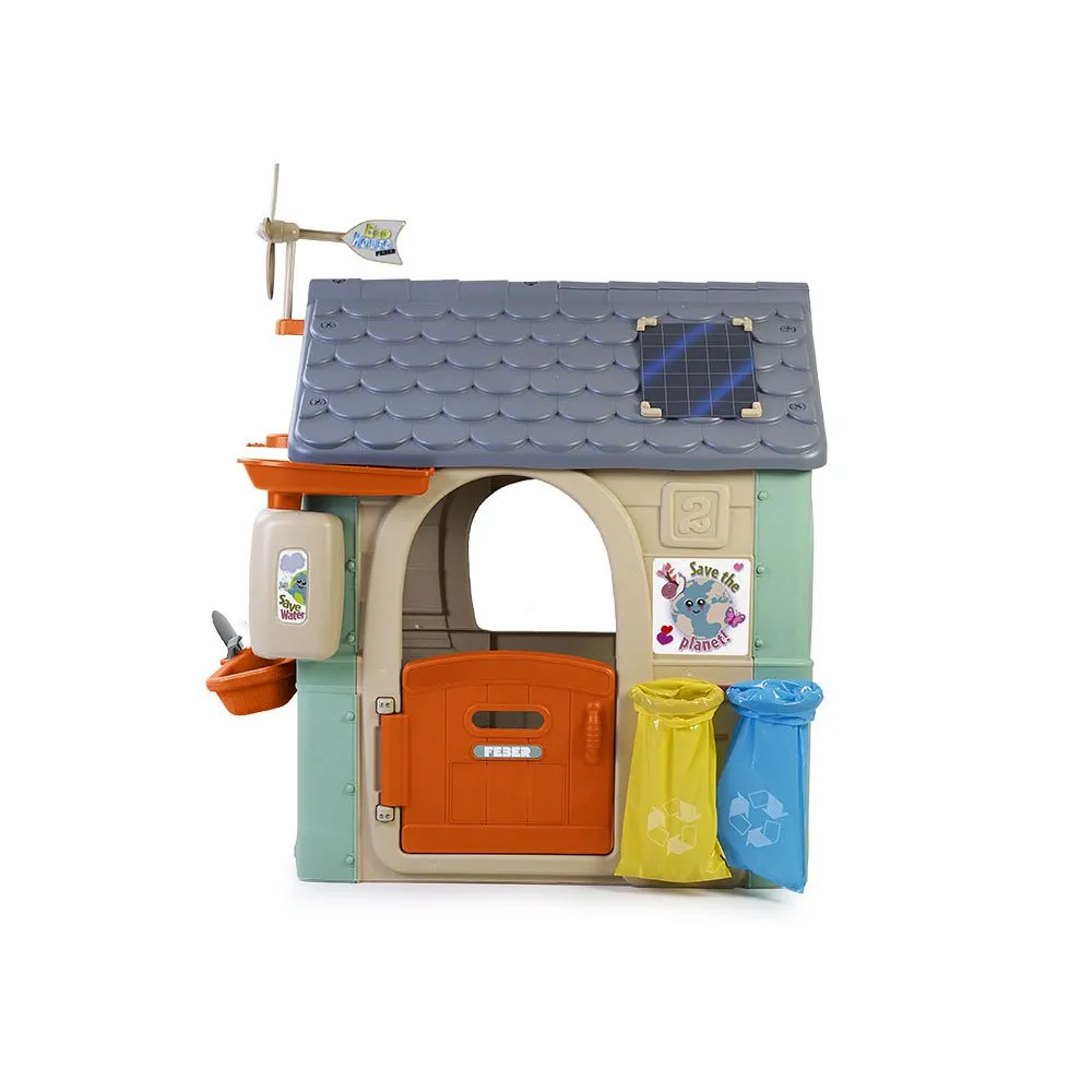 Игровой домик, включающий обучающие занятия по изучению природы и изготовленный на 90% из переработанного пластика.