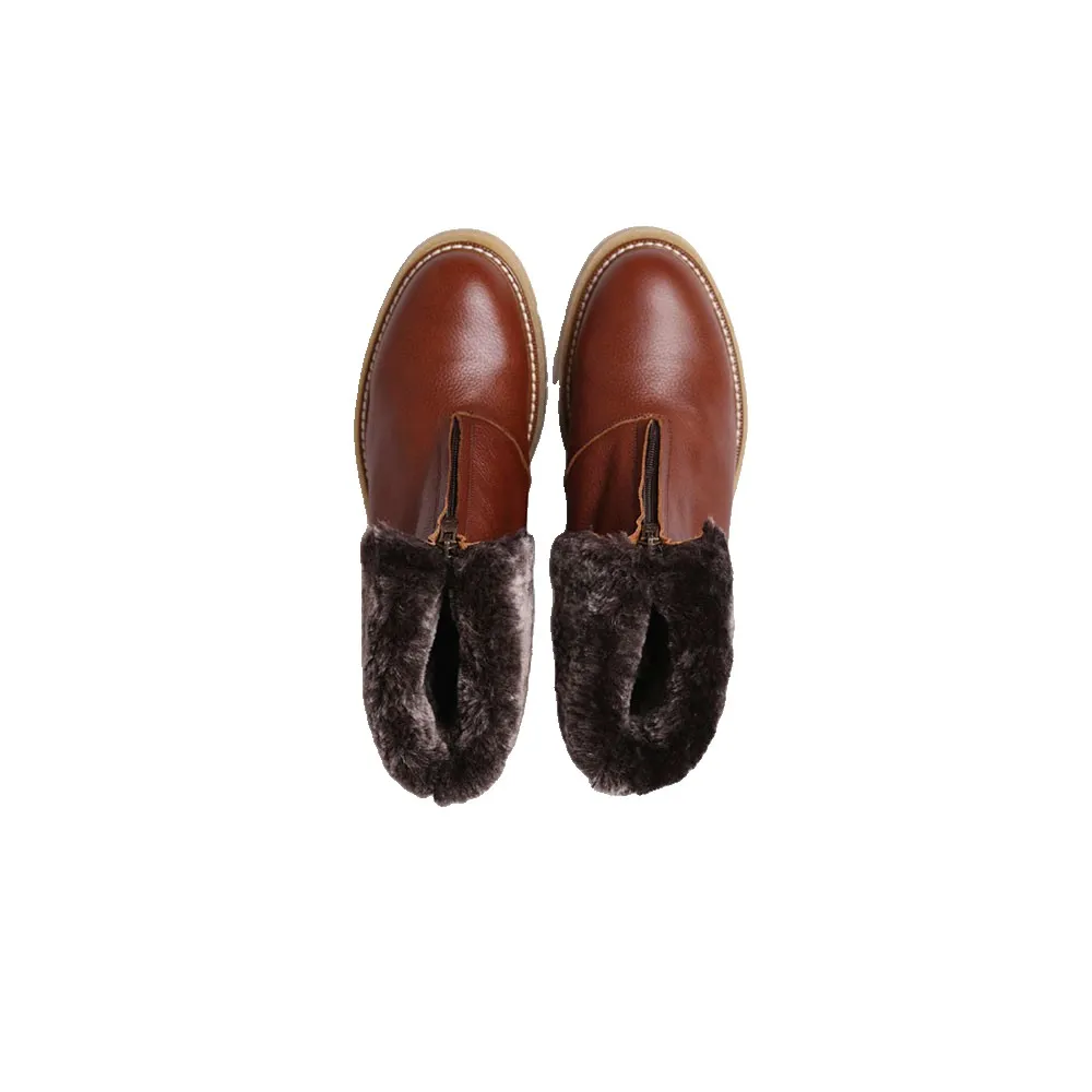 Эти женские сапоги изготовлены из кожи и имеют мягкую подкладку из искусственного меха.