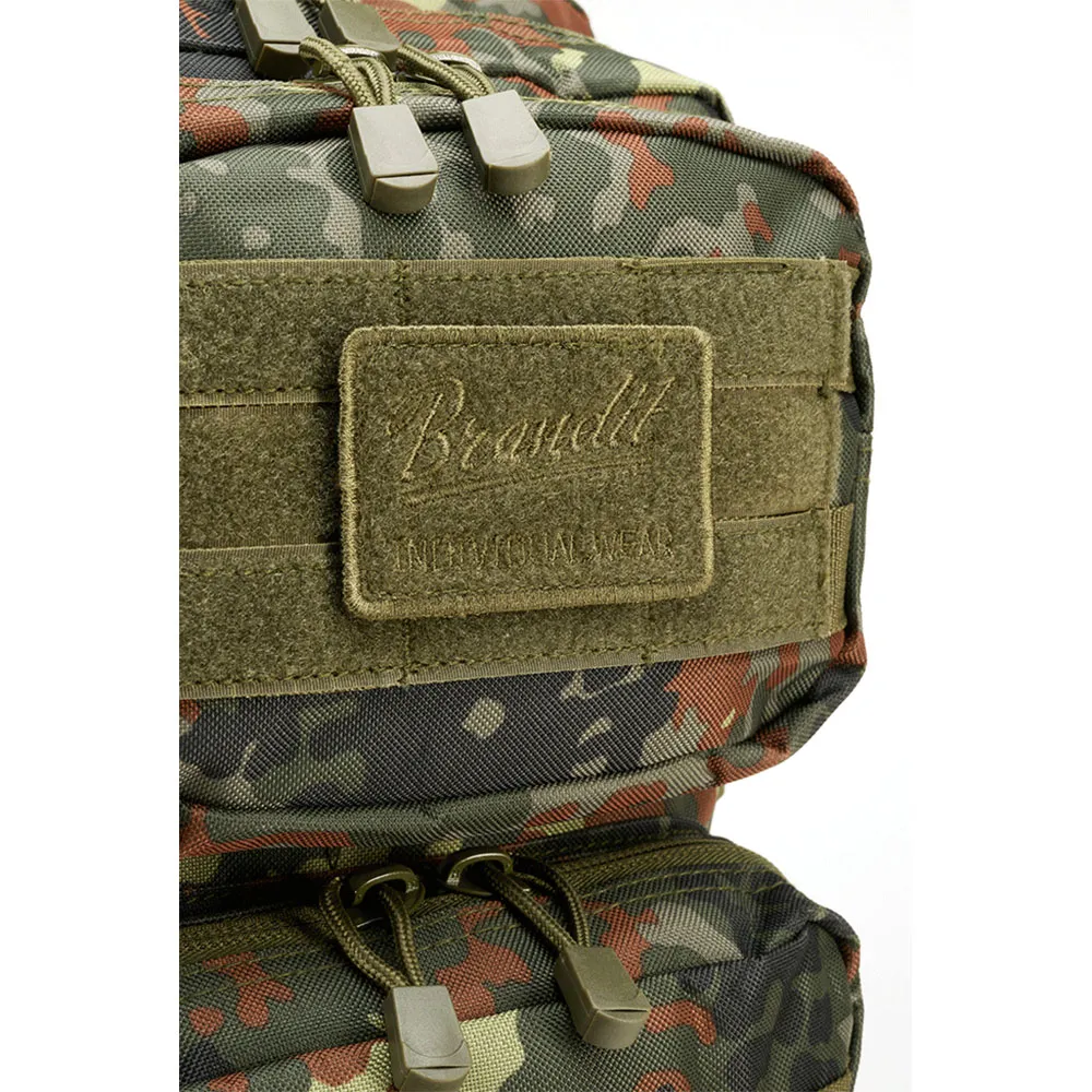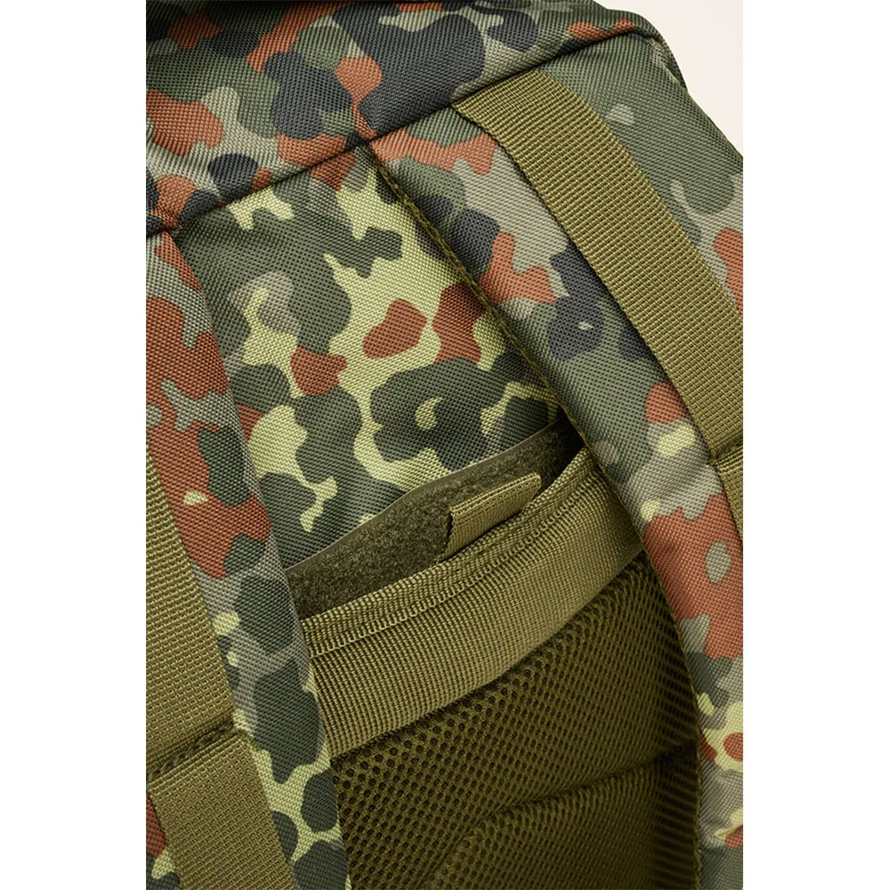 - Система Molle 40 л - Мягкие плечевые лямки - D-образные кольца - Боковые компрессионные ремни - Сетчатые отделения для напитков - Поверхность на липучке с нашивкой - Флажок - Индивидуально регулируемые нагрудный и поясной ремни - Ручка для переноски - Карабин в комплекте - Практичные быстросъемные застежки - Материал: полиэстер 600DEN