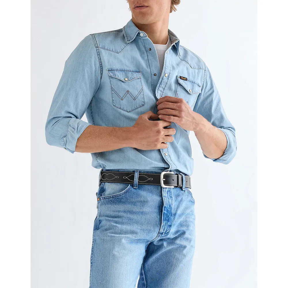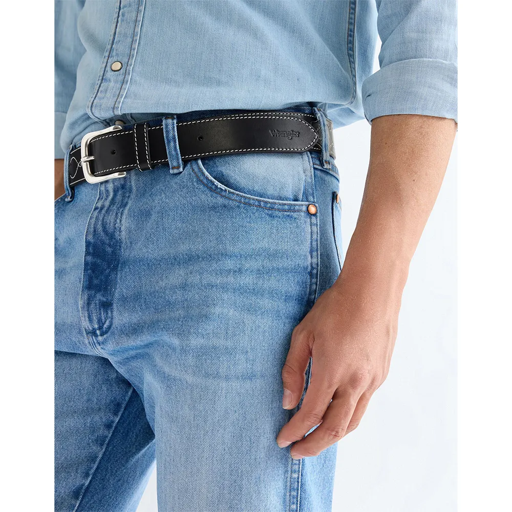 Этот кожаный ремень премиум-класса, украшенный деталями в стиле вестерн и тисненым логотипом Wrangler, - это классика, которая идеально сочетается с вашими любимыми джинсами Wrangler.
