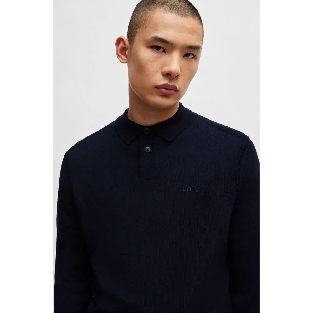 Повседневный свитер с воротником-поло от BOSS Menswear. Изготовлен из мягкого трикотажа, имеет стандартный крой и украшен вышитым логотипом на груди. Изделие выполнено из шерсти, полученной из ответственных источников. Для нас ответственное происхождение означает отсутствие мулесинга и соответствие стандартам пяти свобод защиты животных.