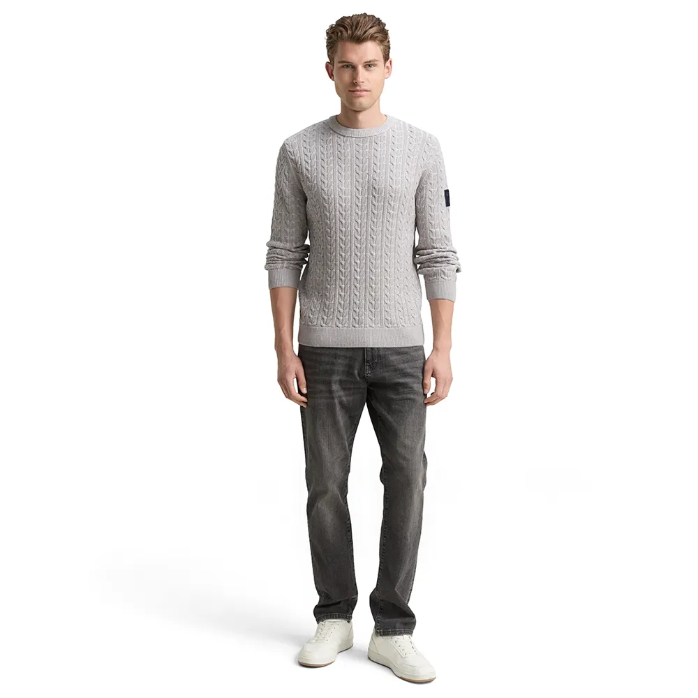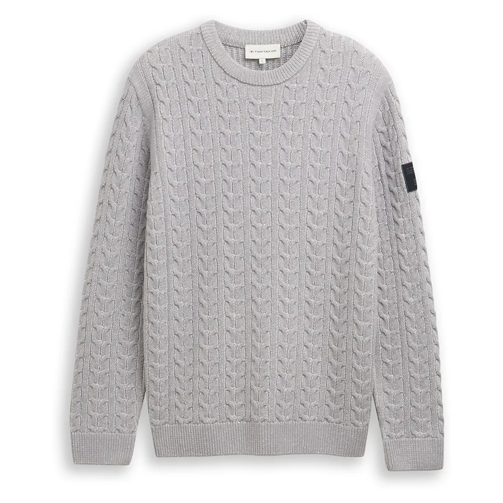 Джемпер с узором «косичка» спереди и на рукавах, с логотипом на верхней части рукава.