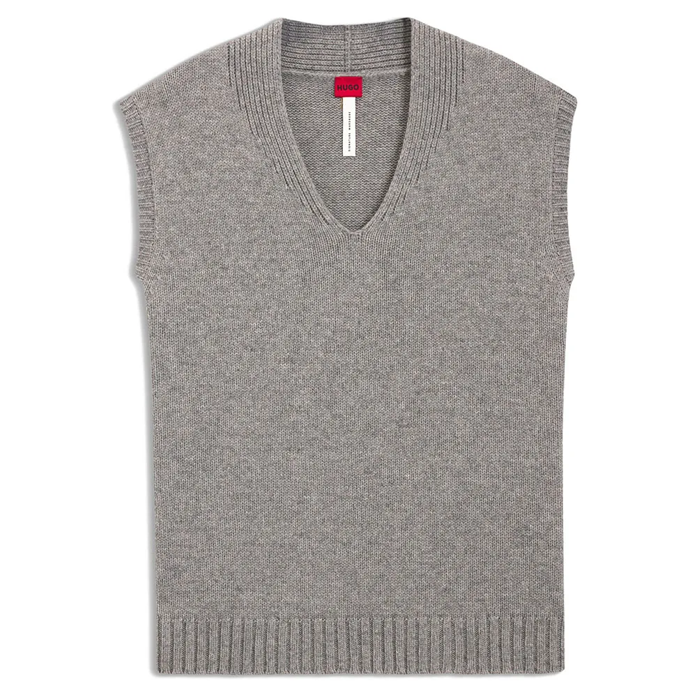 Погрузитесь в роскошь с этим свитером без рукавов от HUGO Womenswear, выполненным из высококачественной шерсти и имеющим свободный крой. Широкие приспущенные плечи.