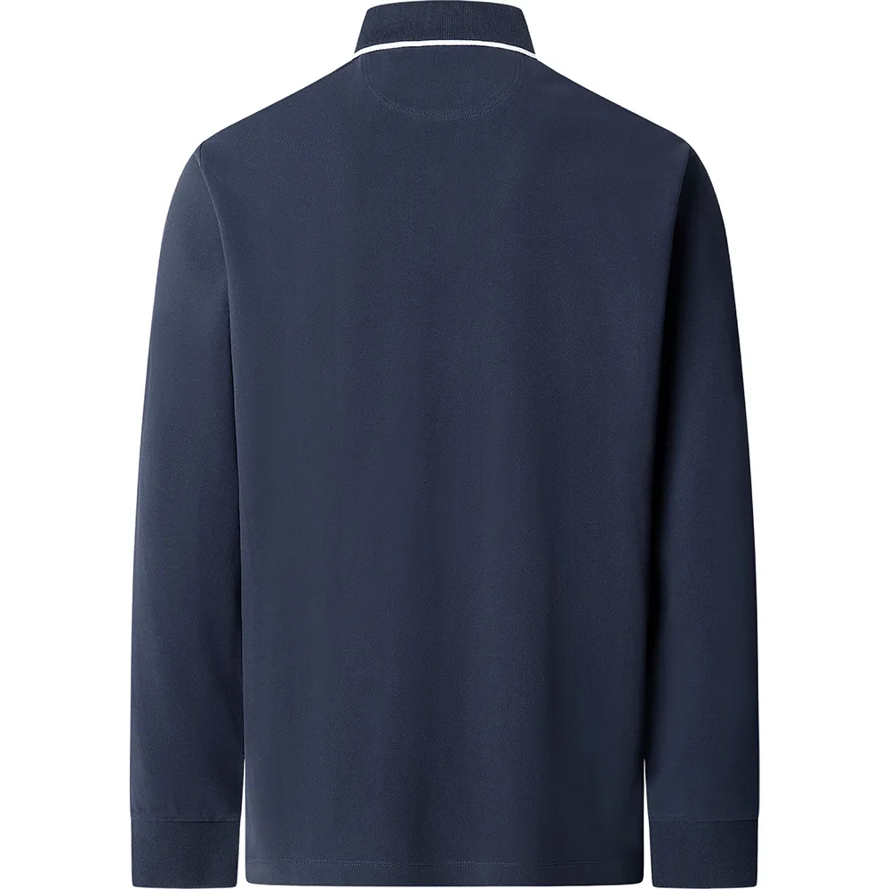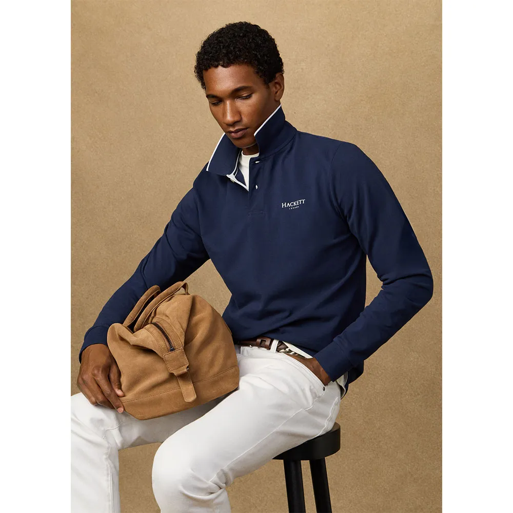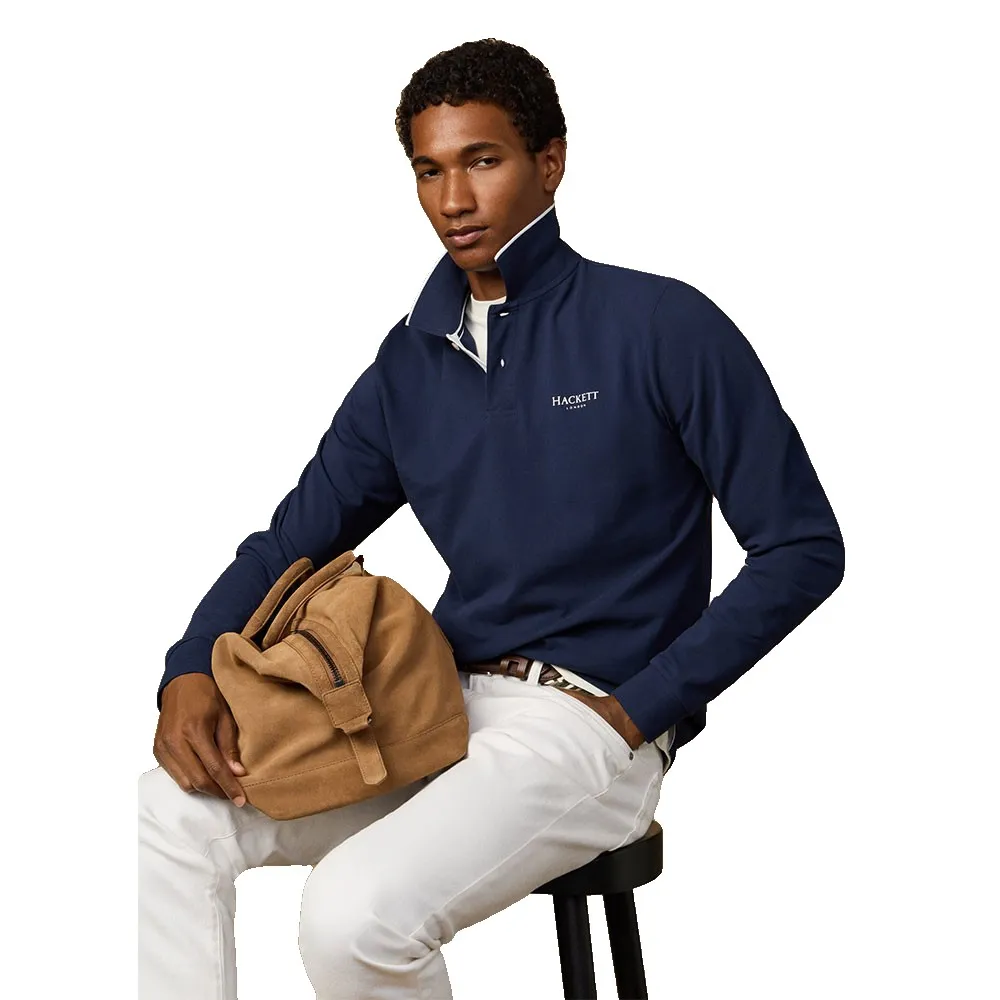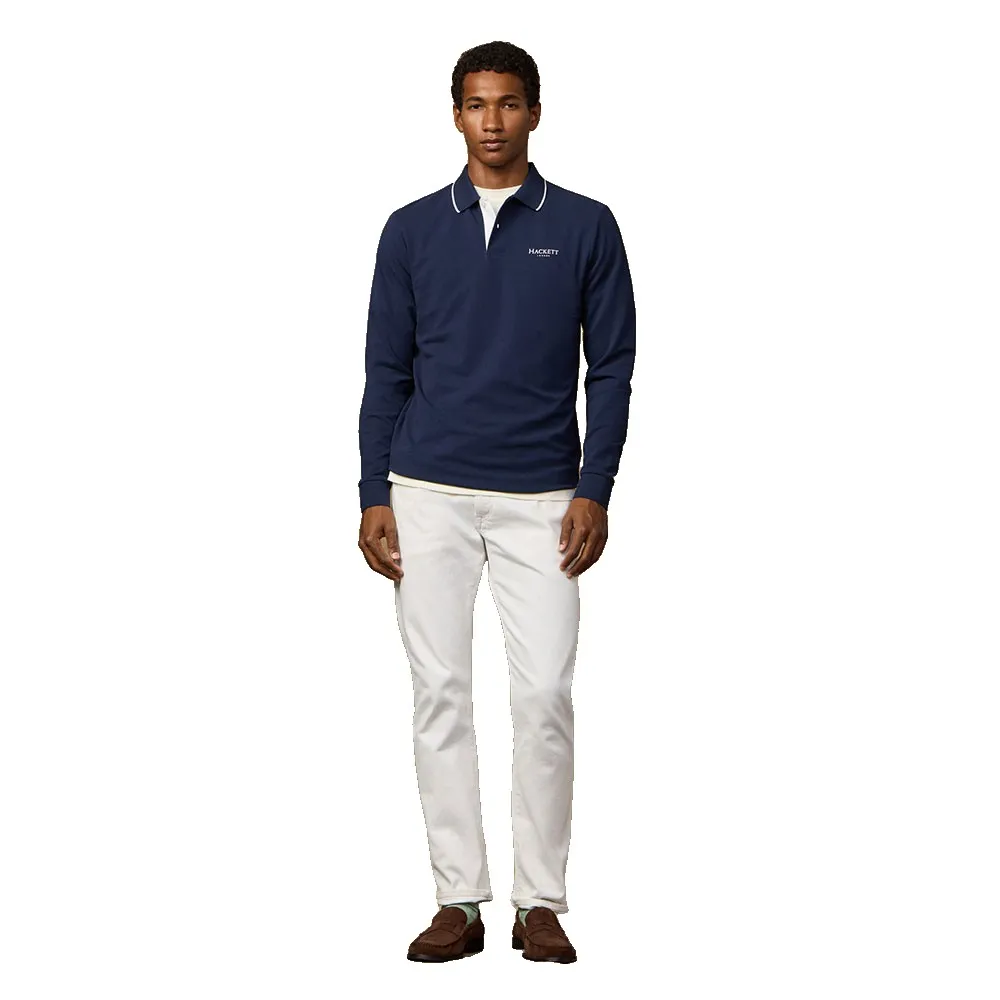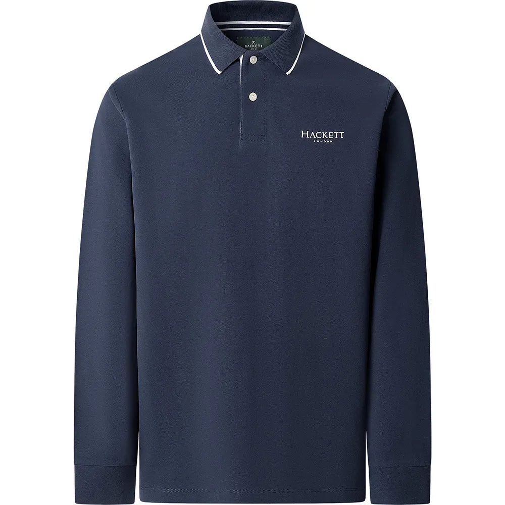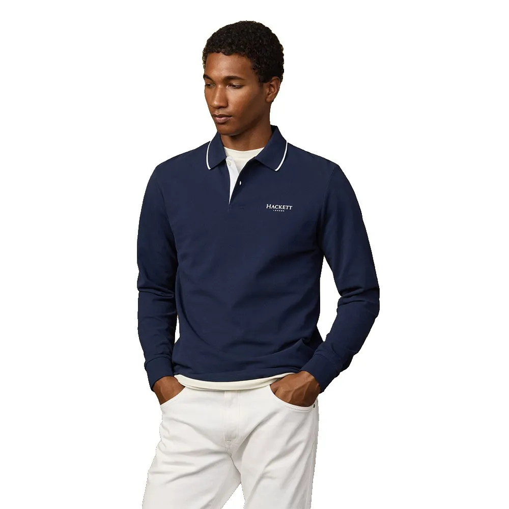 Поло Hackett Heritage с длинными рукавами, фирменным принтом на левой стороне груди и воротником с полосатой отделкой.