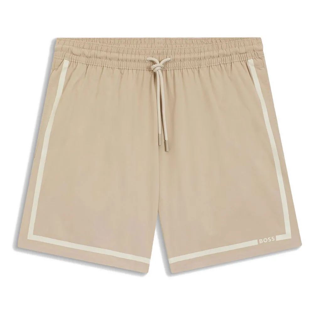 Эти мужские плавательные шорты BOSS из эластичной, быстросохнущей ткани украшены принтом в виде полосок и логотипа. Регулируемый эластичный пояс на шнурке.
