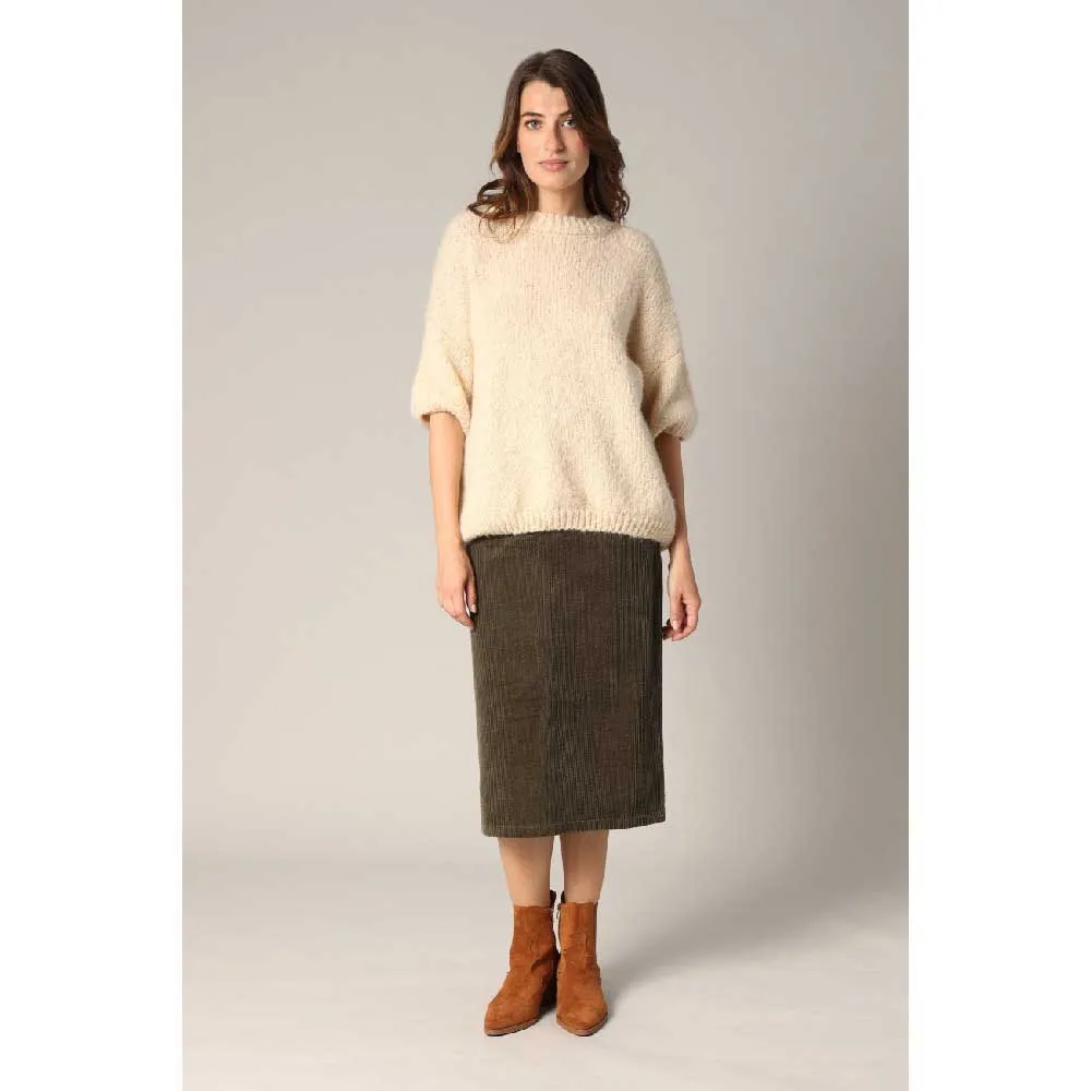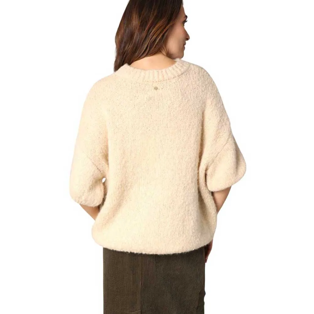 Свитер AMBRA со свободным кроем и короткими рукавами - это мягкий и приятный аксессуар. Мягкая, обволакивающая вязка создает расслабленный, женственный силуэт, а круглый вырез и ребристая отделка добавляют ему структурированности. Не слишком теплый и не слишком легкий, этот свитер сочетает в себе комфорт и стиль. Надетый поверх классических брюк или длинной юбки, он добавит изюминку вашим повседневным образам. Базовая вещь, которая совсем не обычная, и которую можно носить с закрытыми глазами.