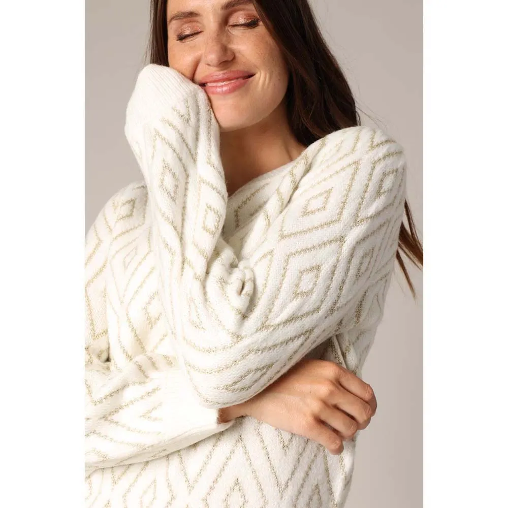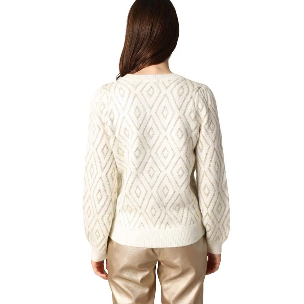 Свитер MAINA не только согревает, но и переливается на свету, словно шикарный диско-шар. Его ромбовидный узор, украшенный металлизированной нитью, добавляет блеска вашим дням (и вечерам). Мягкая вязка и классический круглый вырез делают его идеальным спутником для стильной зимы. Наденьте его, когда захотите, чтобы легко сочетать комфорт и блеск. Нет сомнений, что эта вещь привлечет внимание... даже в сильный мороз.