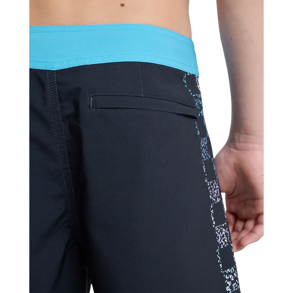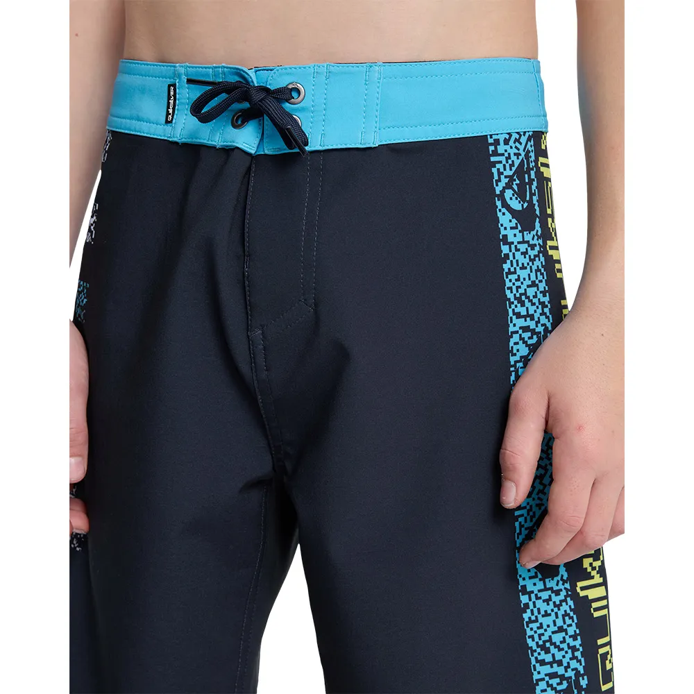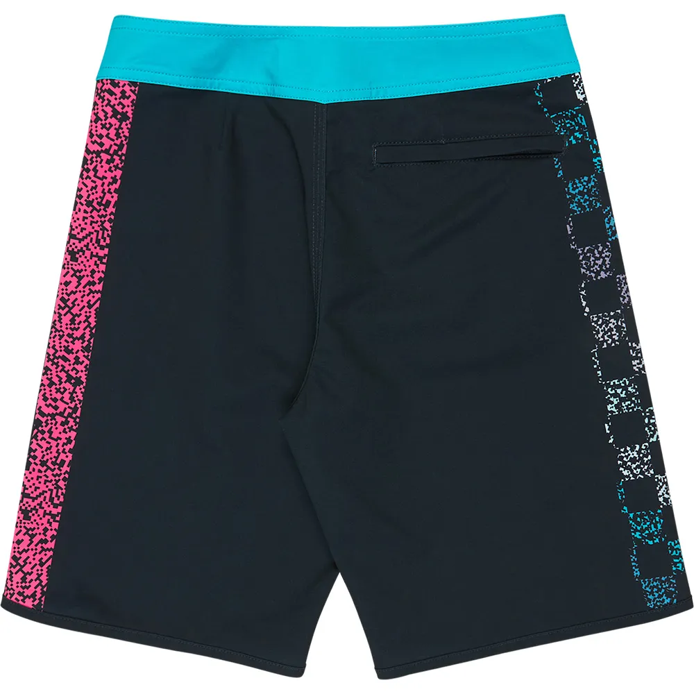 Быстросохнущие, УЛУЧШЕННЫЕ, Изготовлены из 50% переработанных полиэфирных волокон из текстильных отходов и 35% из пластиковых бутылок, Водоотталкивающая обработка без ПФУ, Ткань: Ткань Surfsilk, переработанный полиэстер, эластан, 175 г/м2, ХАРАКТЕРИСТИКИ, Застежка: Высокоэффективная, Фиксированный пояс, Длина по внешнему шву: 17´´, Застежка: Шнурок, Застежка на липучке, Карманы: Задний прорезной карман на молнии, Культовый дизайн в клетку и шрифт Omnifont переосмыслен с пиксельным эффектом, вдохновленным первой коллаборацией с Дэвидом Жюльеном. с Quiksilver.