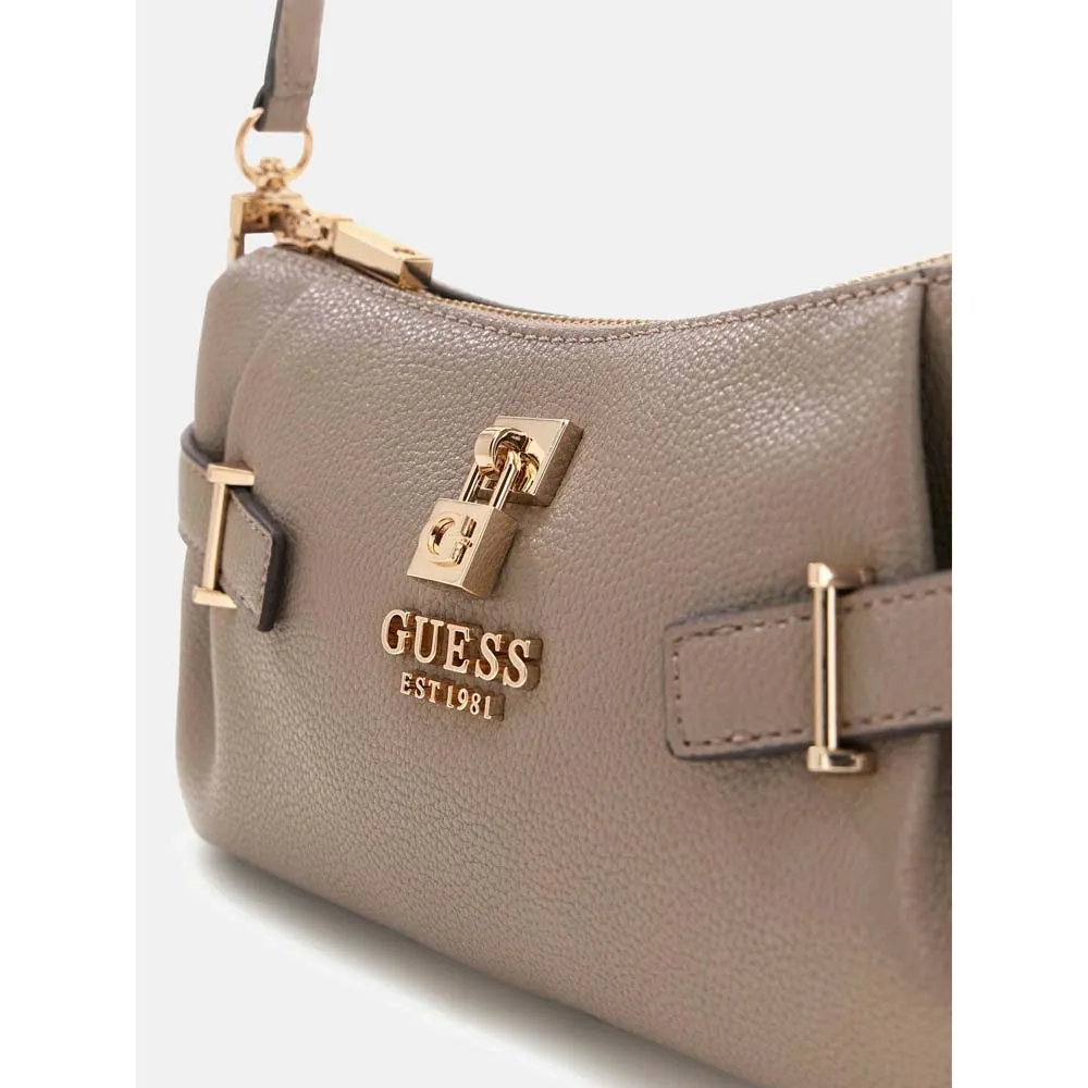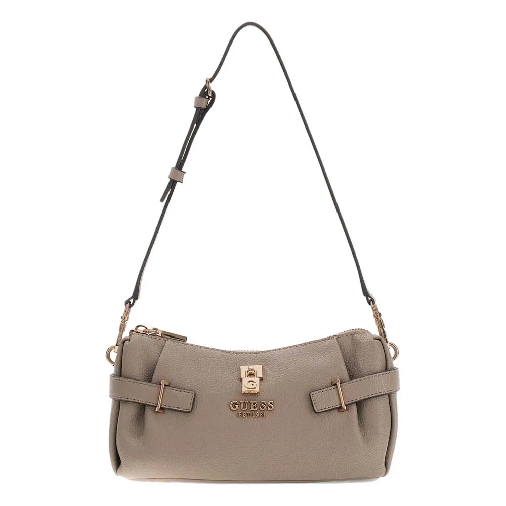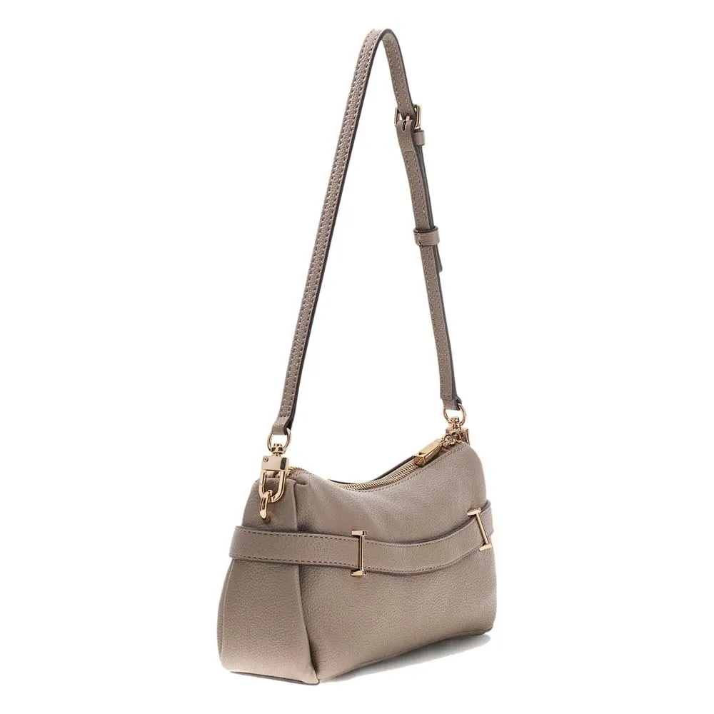 - Внешняя отделка из искусственной кожи. - Застежка-молния. - Фурнитура золотистого цвета. - Подкладка с персонализированным логотипом. - Металлический треугольный логотип спереди.