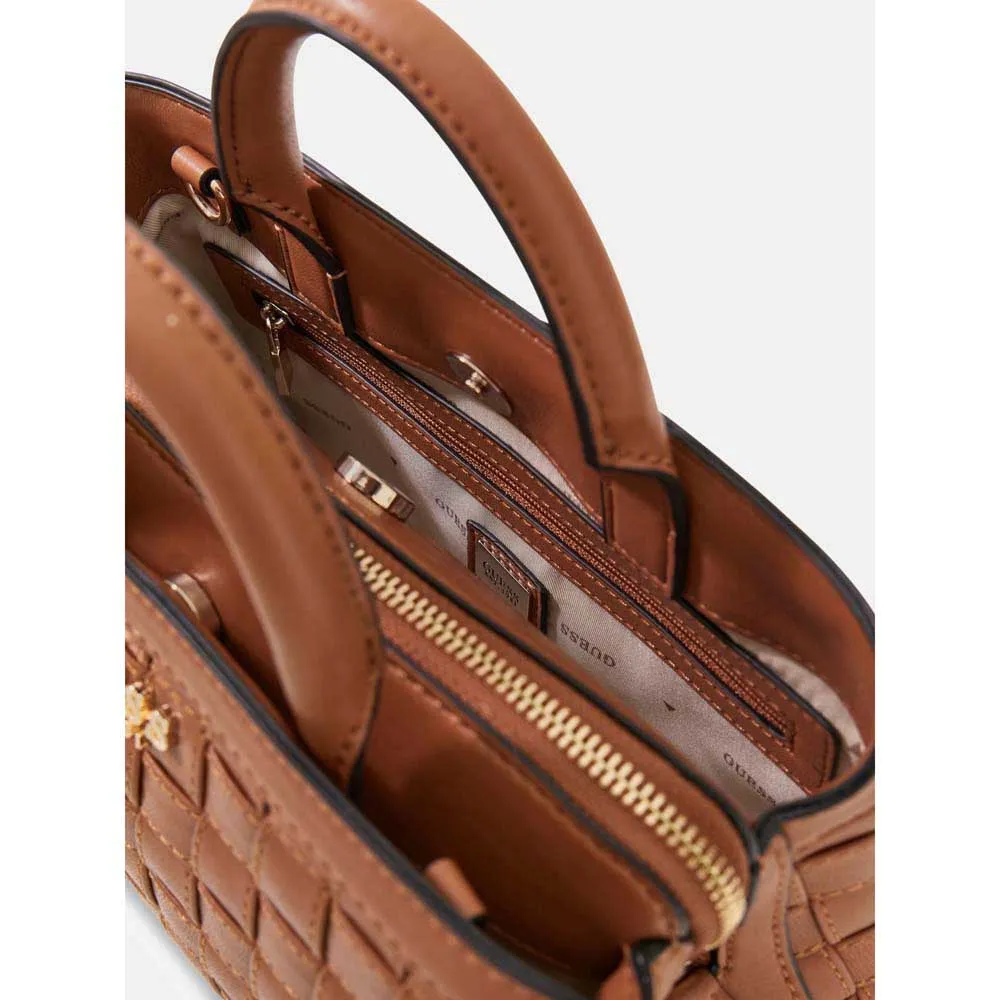 - Внешняя отделка из искусственной кожи. - Застежка-молния. - Фурнитура золотистого цвета. - Подкладка с персонализированным логотипом. - Съемные подвески у основания ручки.