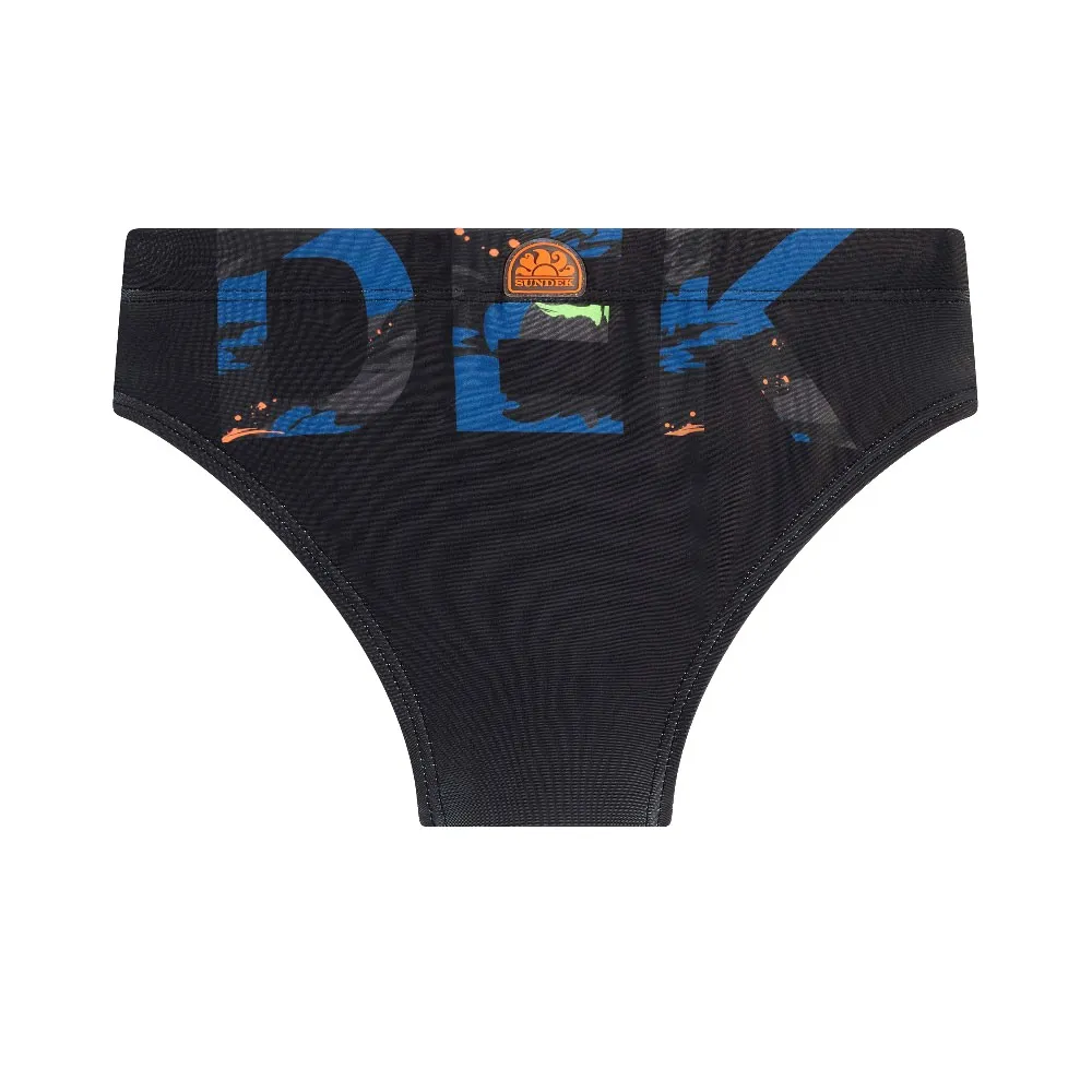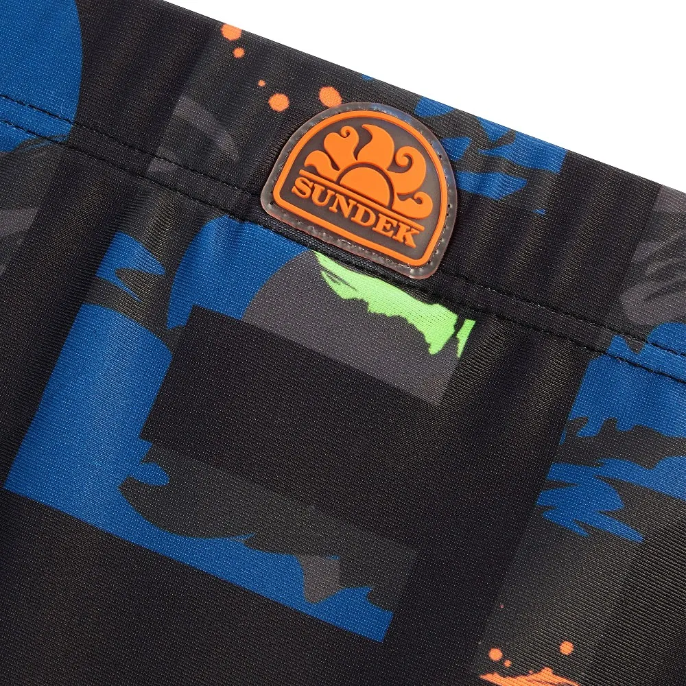 Плавки для мальчиков с разноцветным принтом SUNDEK спереди и сзади.