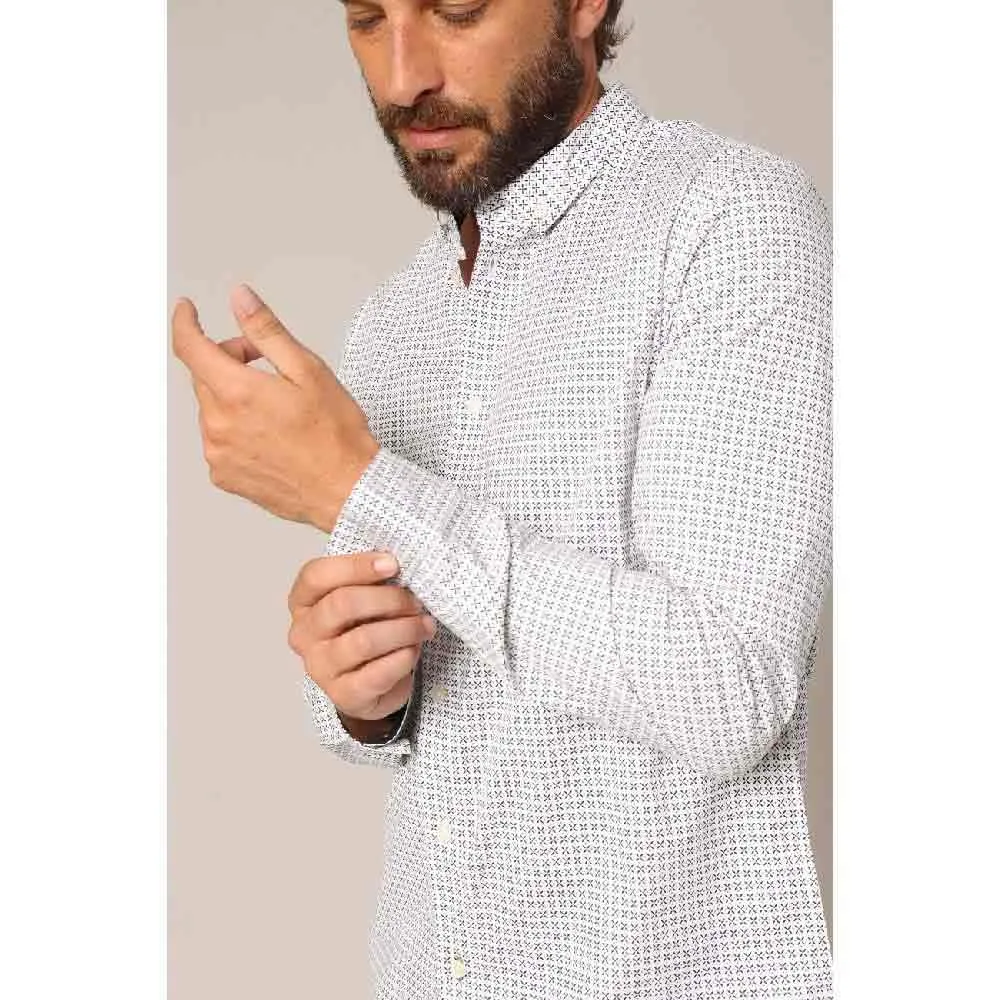 Мужская рубашка Bogart. Изготовленная из 100% хлопка, рубашка Bogart впечатляет своим классическим геометрическим принтом, одновременно современным и сдержанным. Прямой крой обеспечивает гладкую посадку, а воротник и манжеты на пуговицах придают ей шикарный и структурированный вид. Изысканная отделка, такая как тканая этикетка по низу и пуговицы в тон, подчеркивает вневременной городской стиль. Легко сочетается с другой одеждой, ее можно носить под пиджаком или расстегнуть поверх футболки, создавая безупречный образ в любой ситуации.