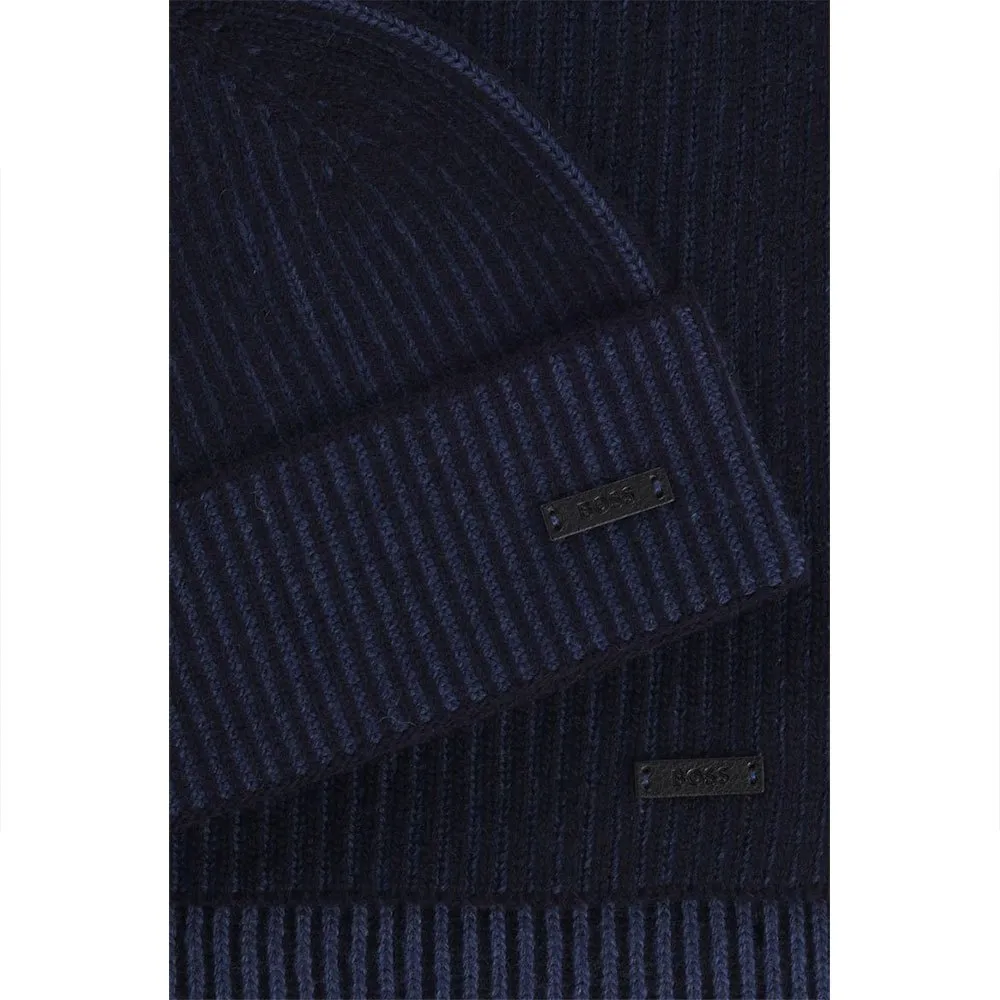 Шляпа и шарф в подарочной коробке, изготовленные из смеси шерсти и кашемира от BOSS.